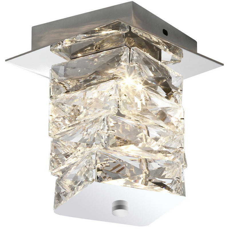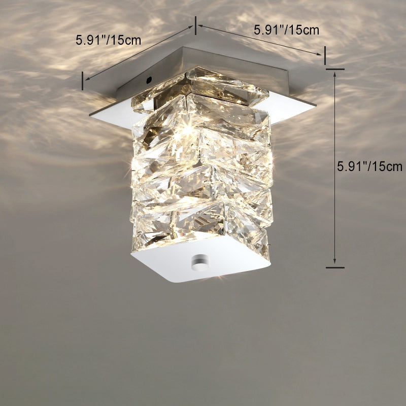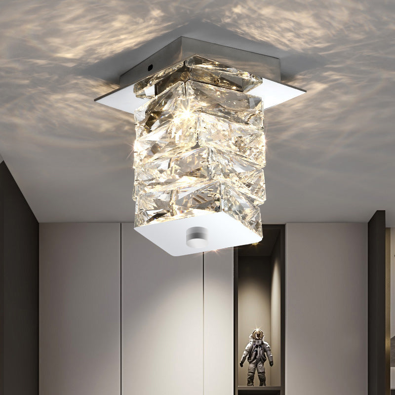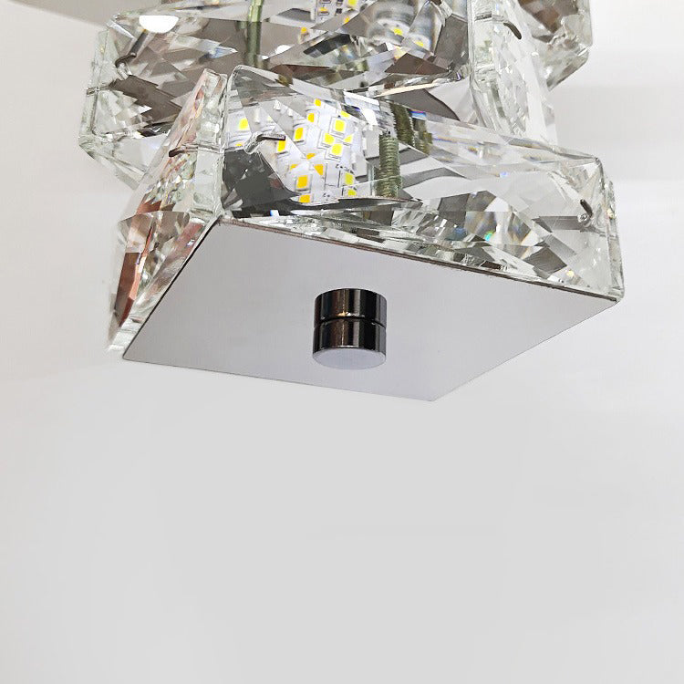 Contemporary Luxury Crystal Cuboid Hardware LED Semi-Flush Mount Ceiling Light For Living Room