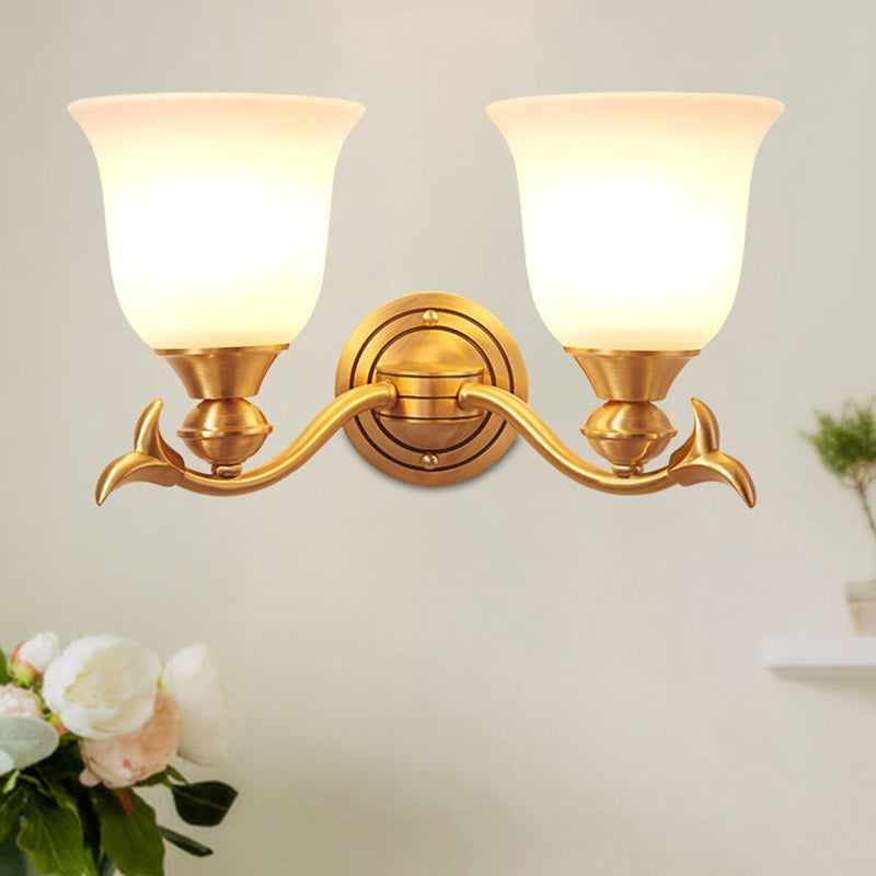 Contemporary Luxury Cup Copper Glass 1/2-Light Wall Sconce Lamp For Living Room