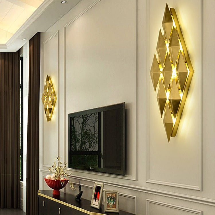 Contemporary Luxury Dazzling Hardware Diamond Shade 9-Light Wall Sconce Lamp For Living Room