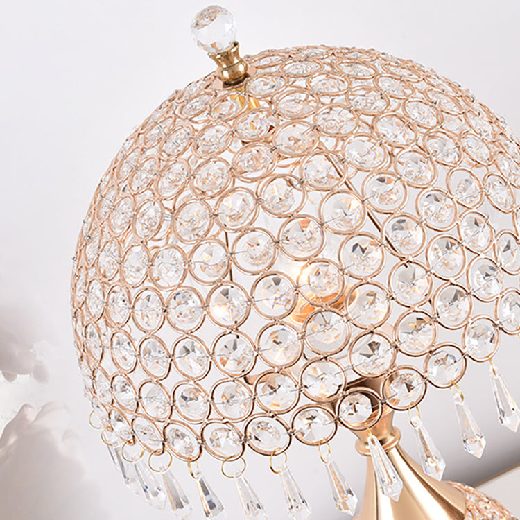 Contemporary Luxury Fabric Shade Crystal Ball Iron Base 1-Light Table Lamp For Home Office