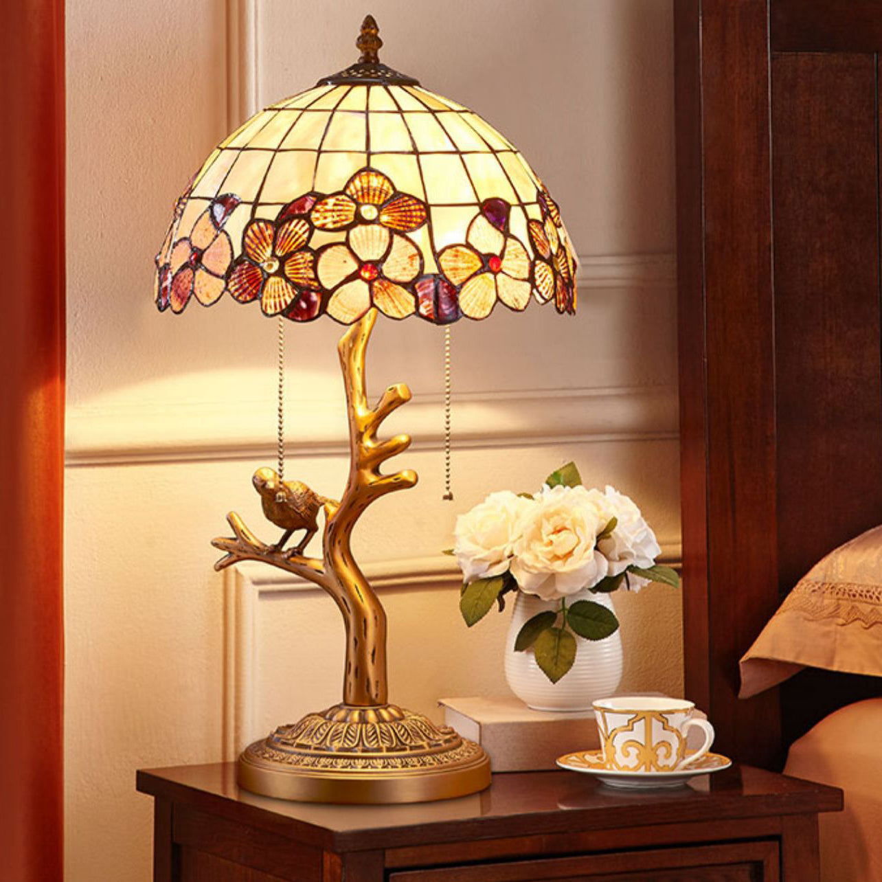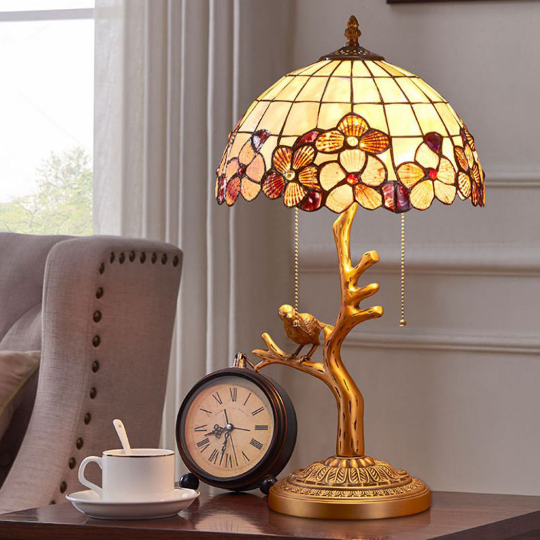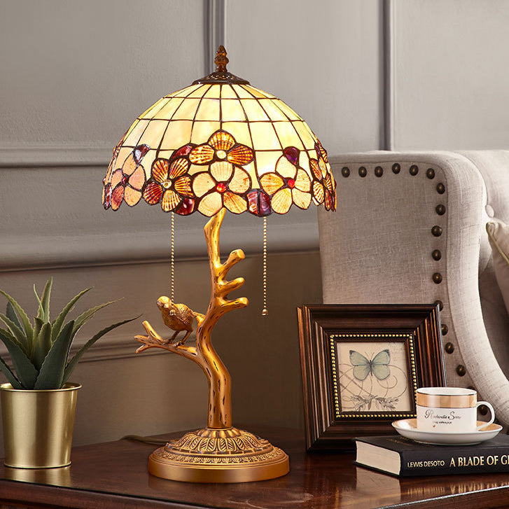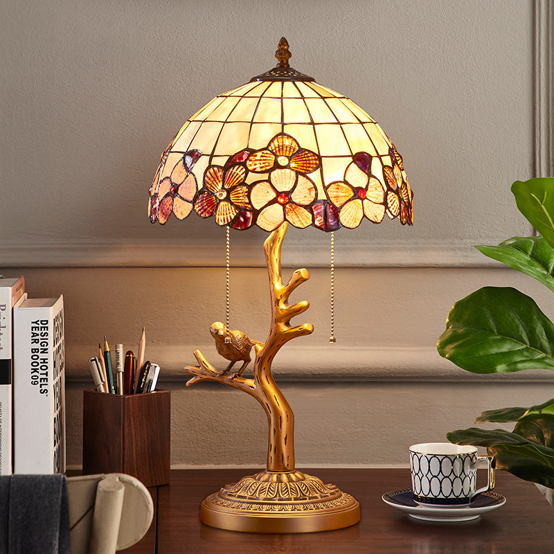 Contemporary Luxury Full Copper Bird Decoration Natural Shell Shade 2-Light Table Lamp For Home Office