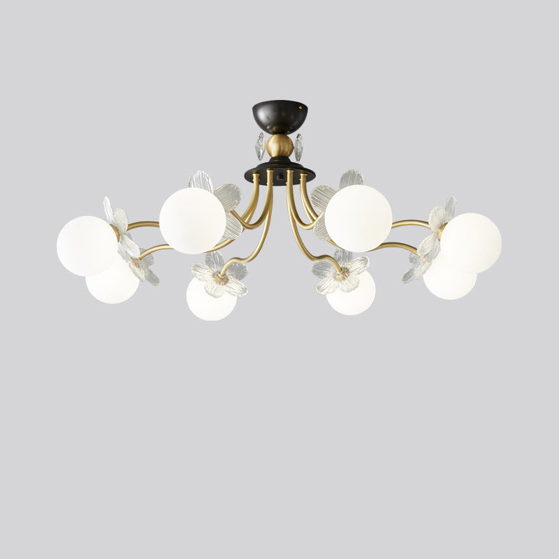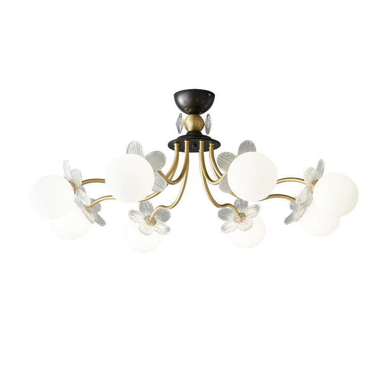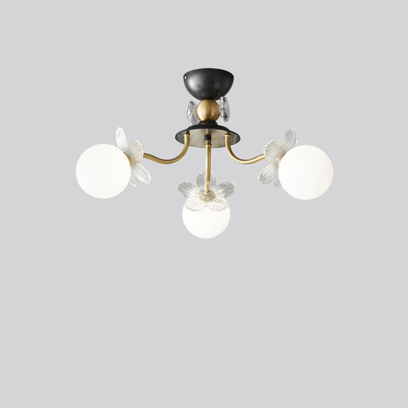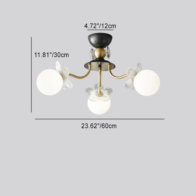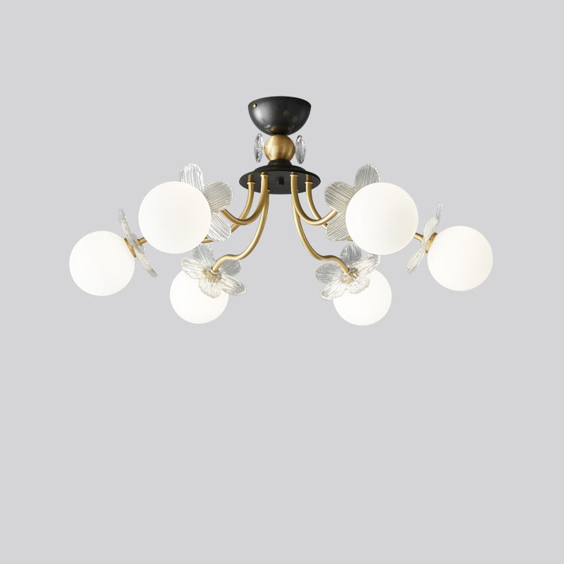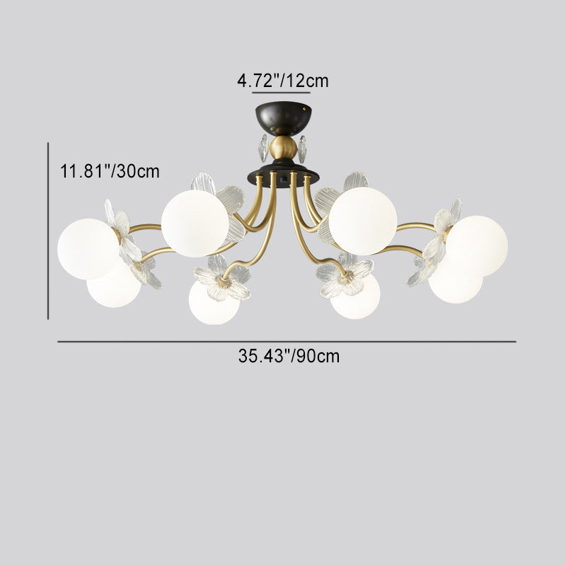Contemporary Luxury Full Copper Petal Glass Shade 3/6/8-Light Semi-Flush Mount Ceiling Light For Living Room