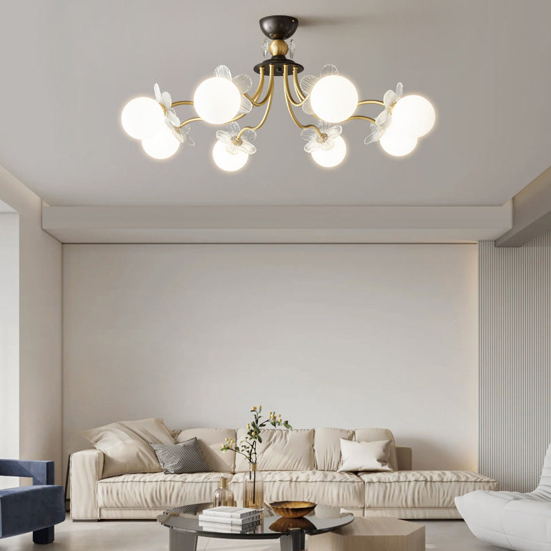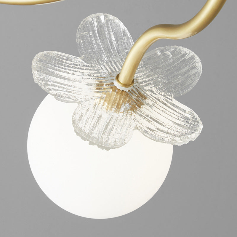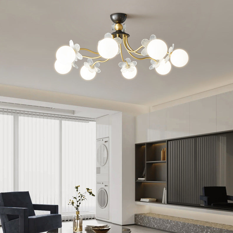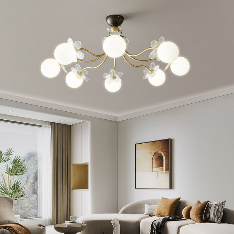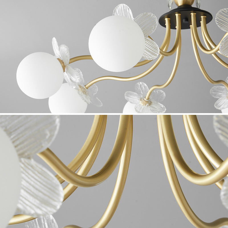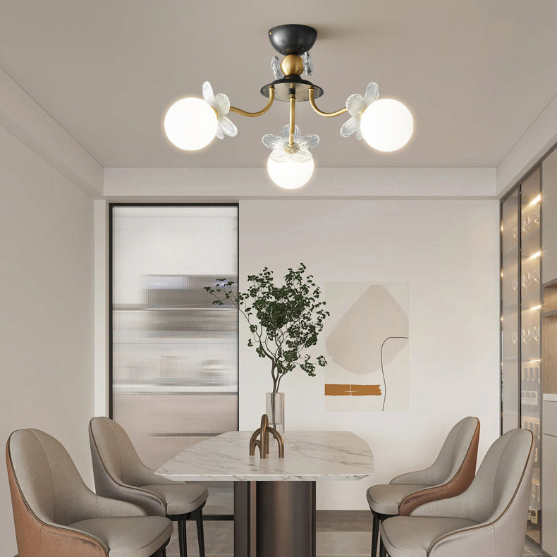 Contemporary Luxury Full Copper Petal Glass Shade 3/6/8-Light Semi-Flush Mount Ceiling Light For Living Room