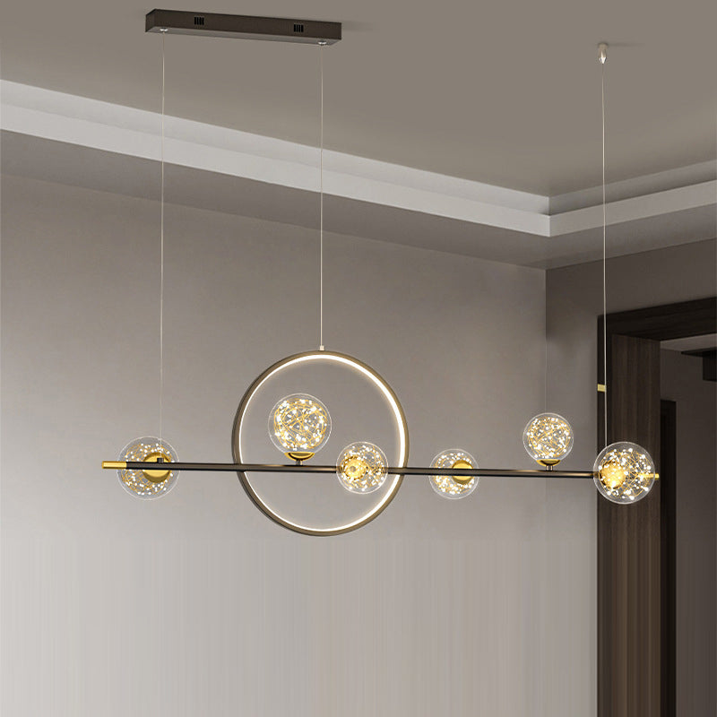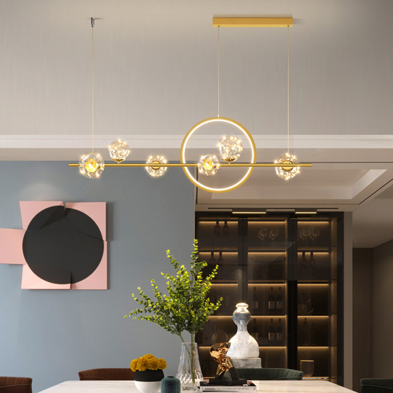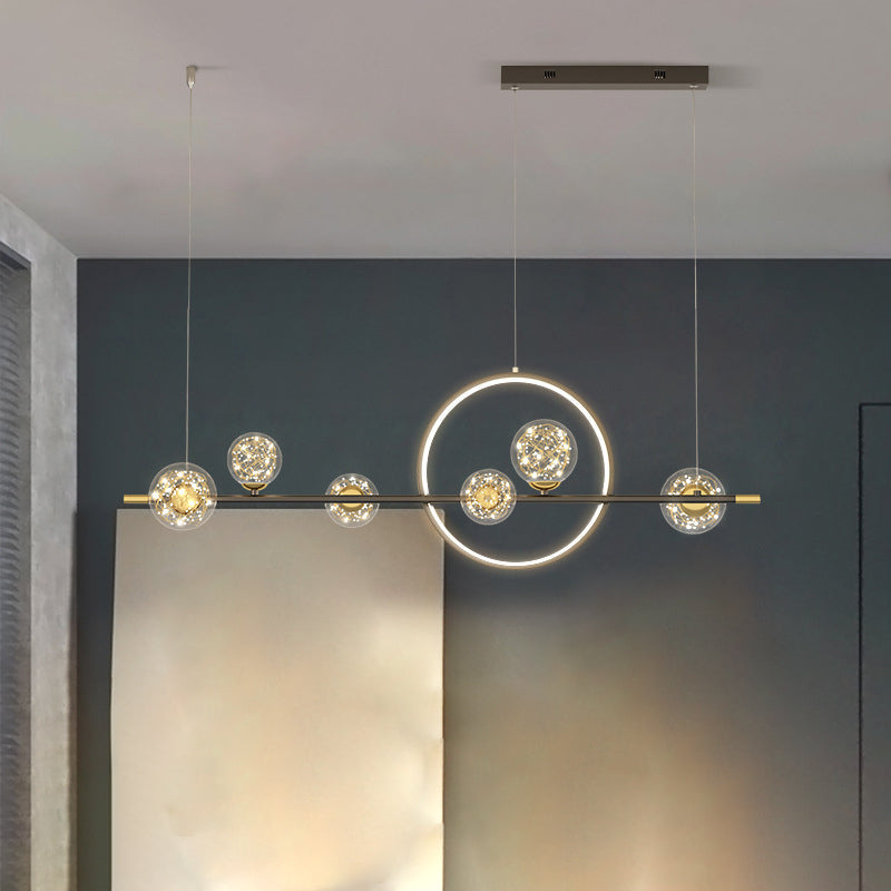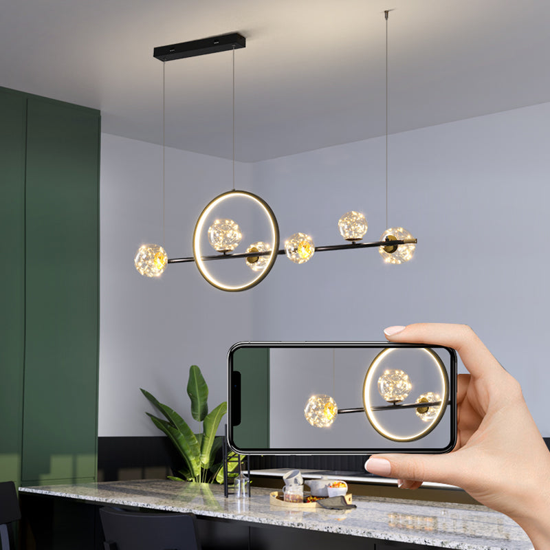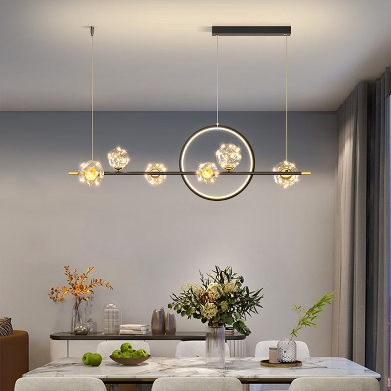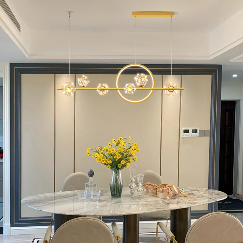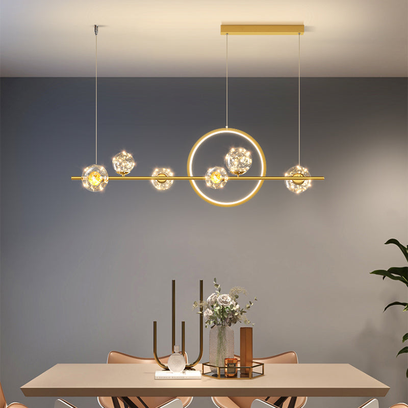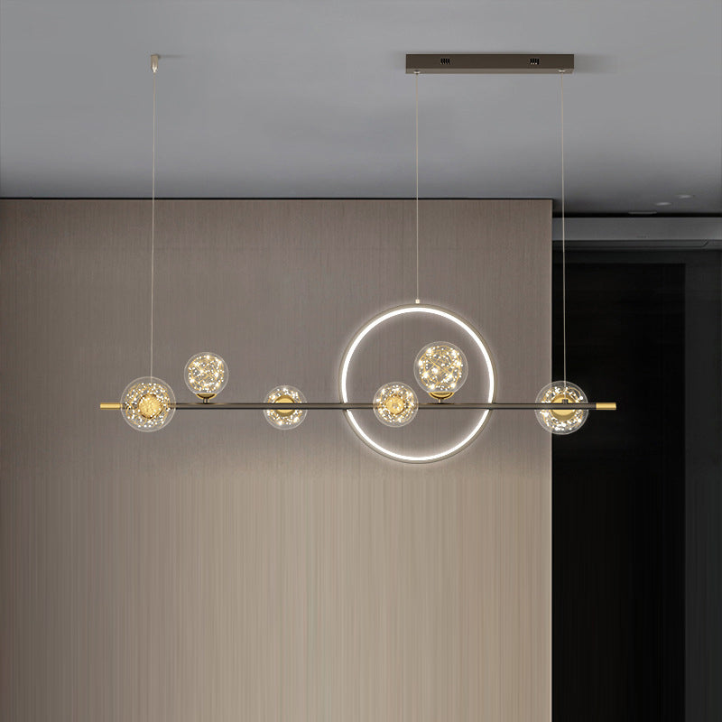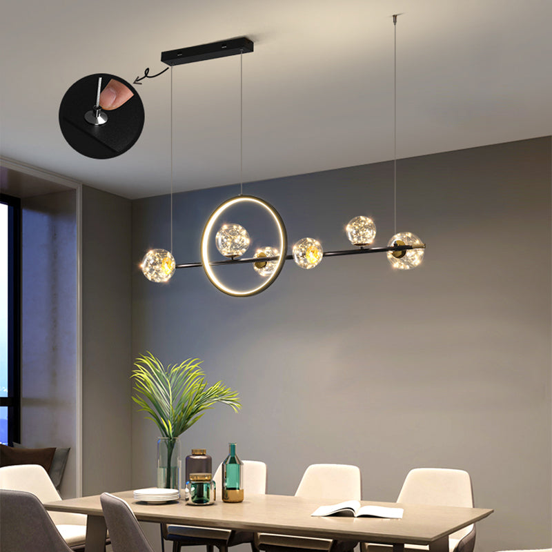 Contemporary Luxury Glass Ball Shade Silicone Long Strip LED Island Light Pendant Light For Living Room