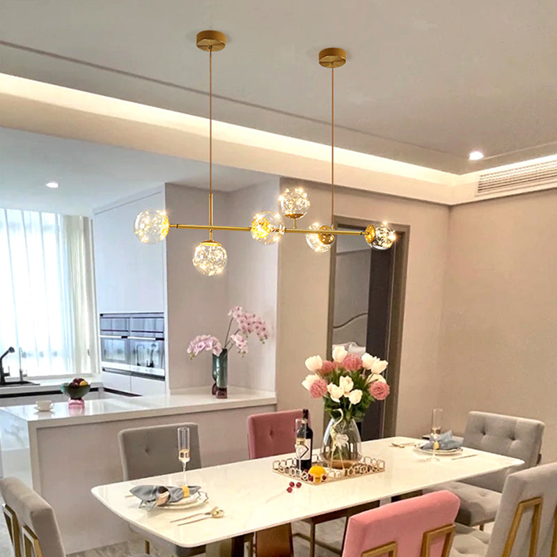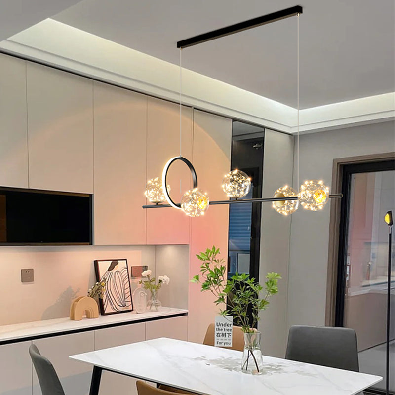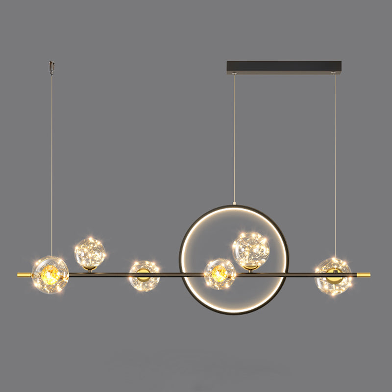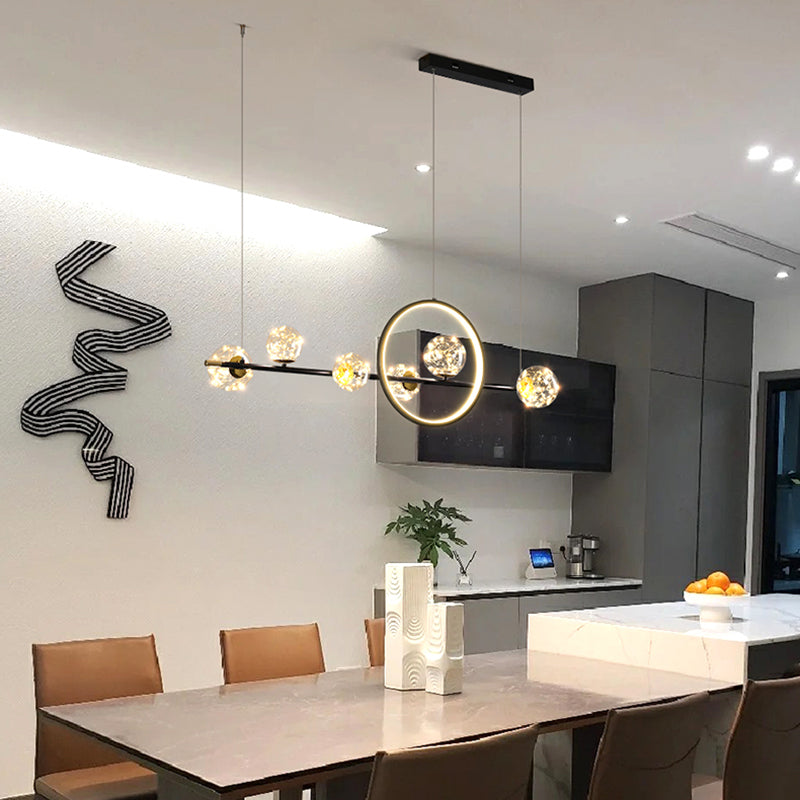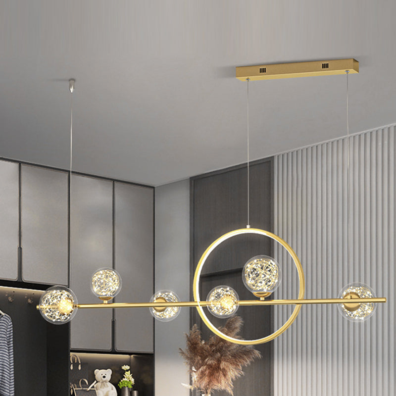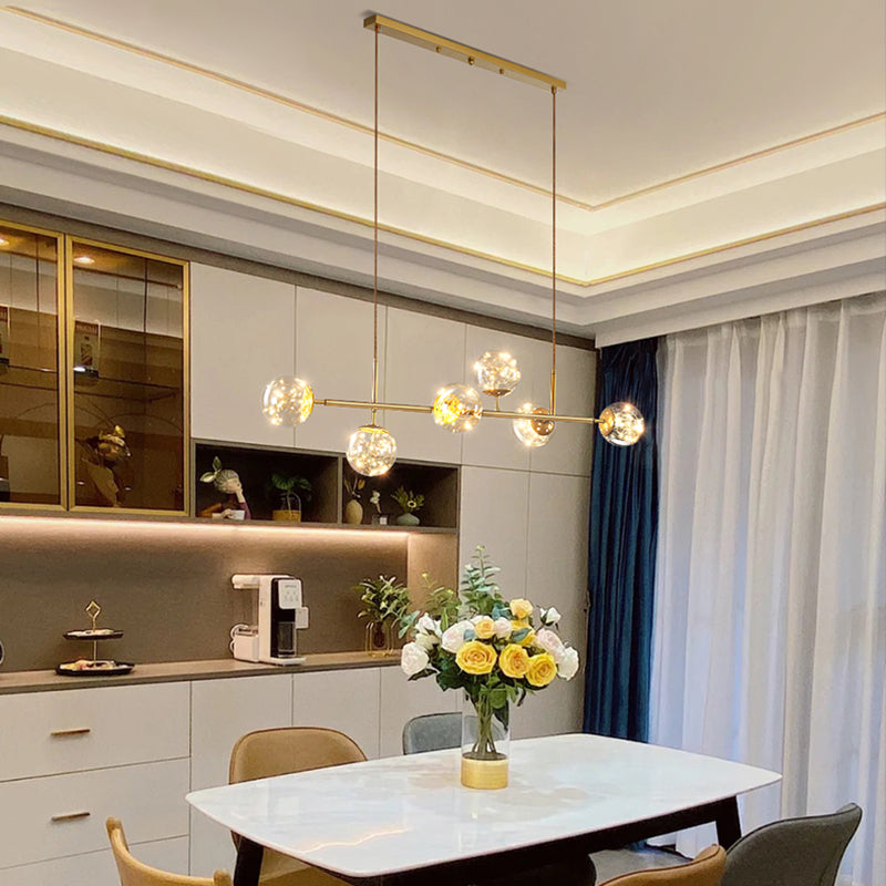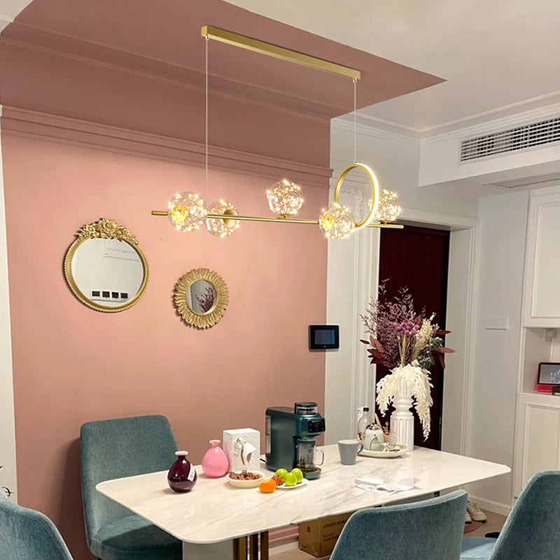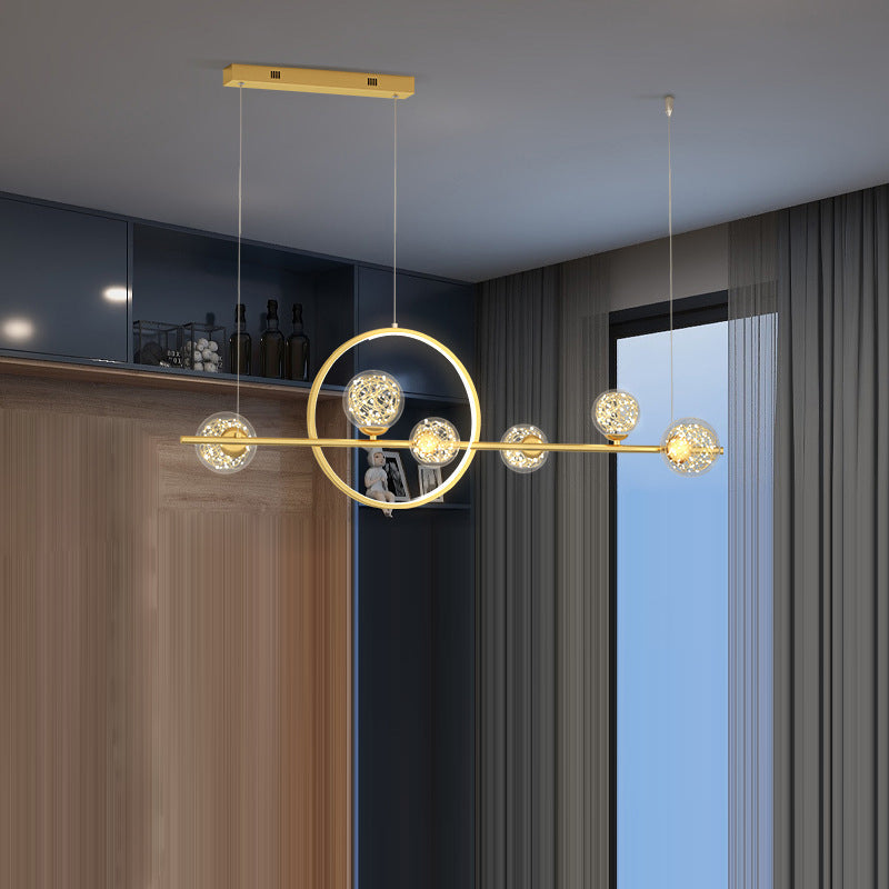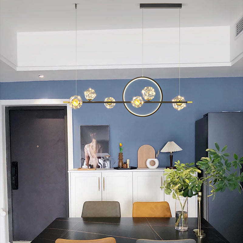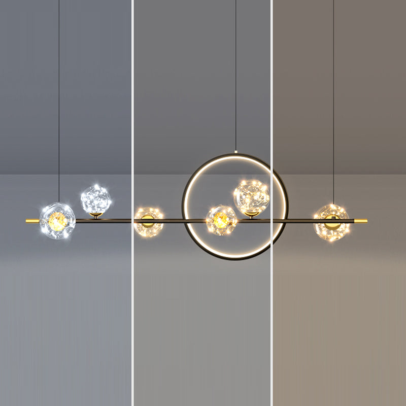 Contemporary Luxury Glass Ball Shade Silicone Long Strip LED Island Light Pendant Light For Living Room