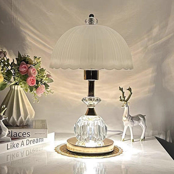 Contemporary Luxury Glass Dome Metal Base LED Table Lamp For Bedroom