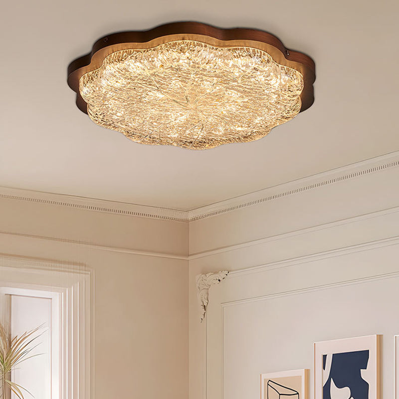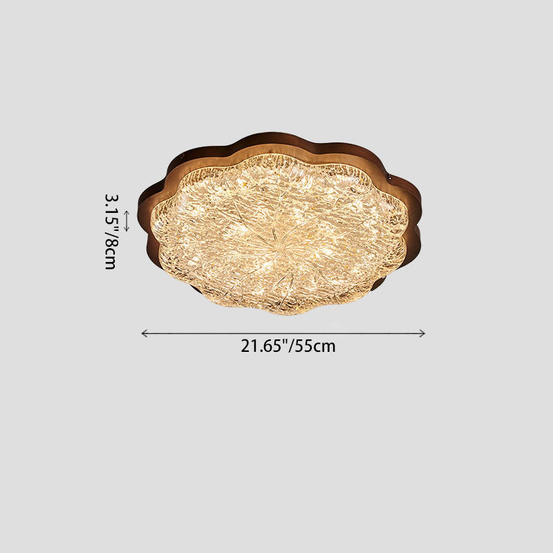 Contemporary Luxury Gold Foil Resin Flower Shade LED Flush Mount Ceiling Light For Living Room