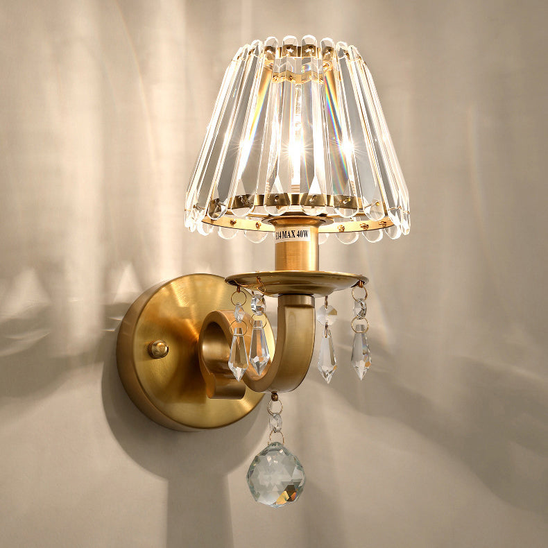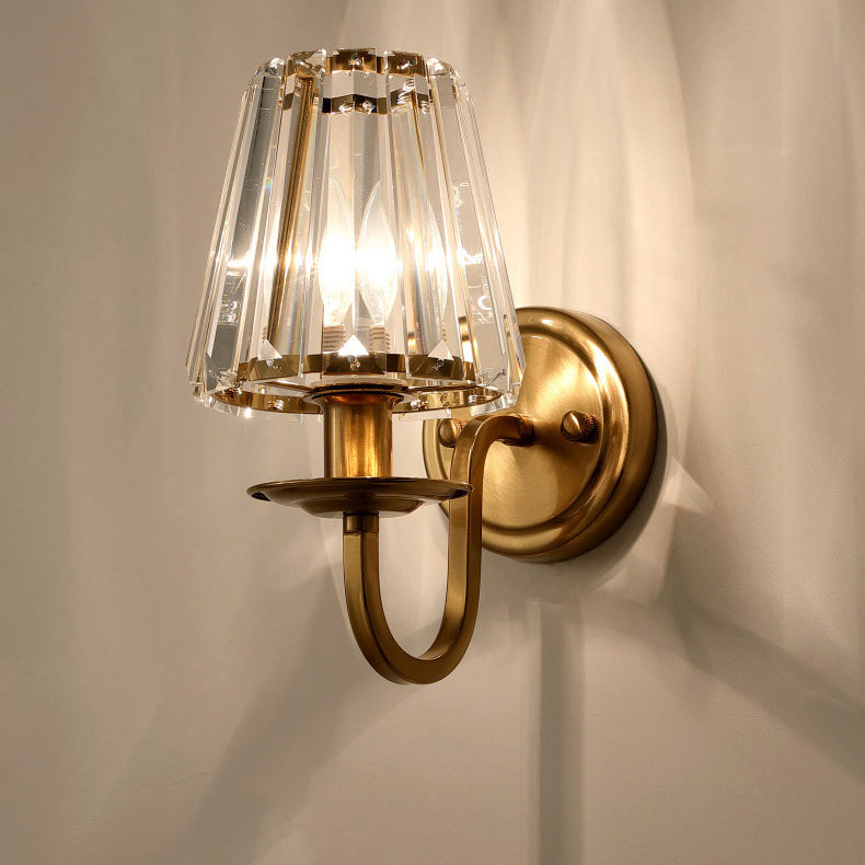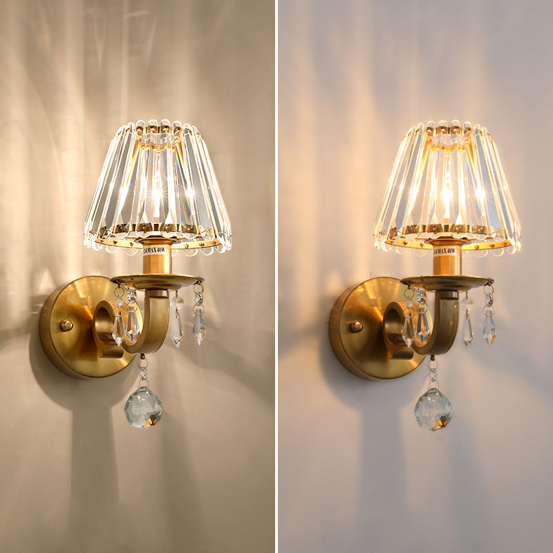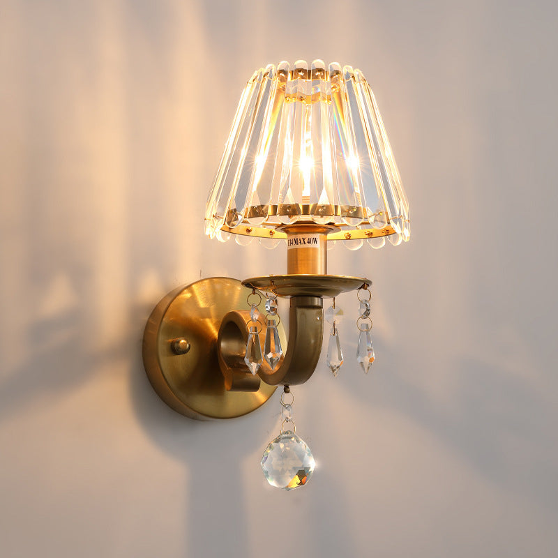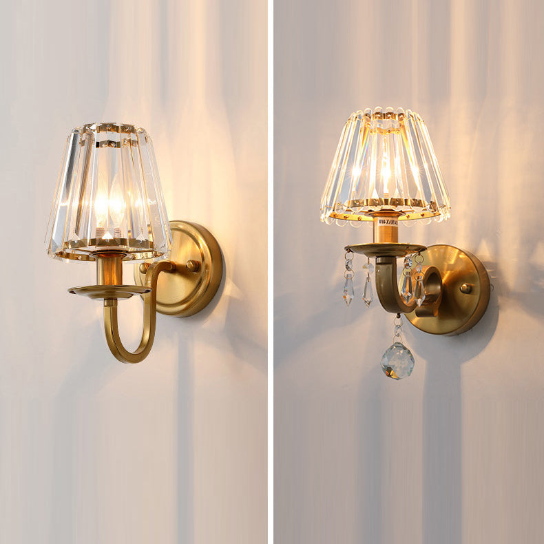 Contemporary Luxury Golden Finish Frame Crystal Shade 1-Light Wall Sconce Lamp For Living Room