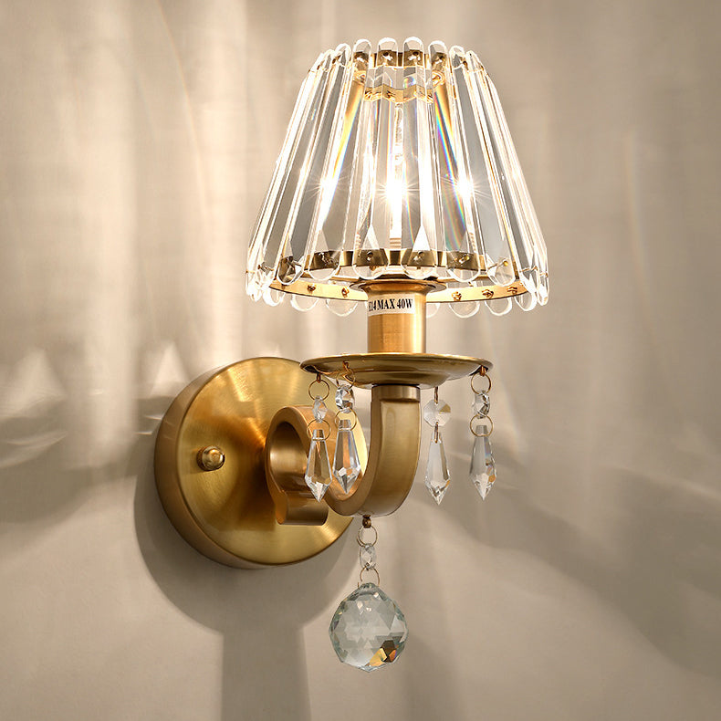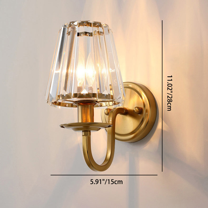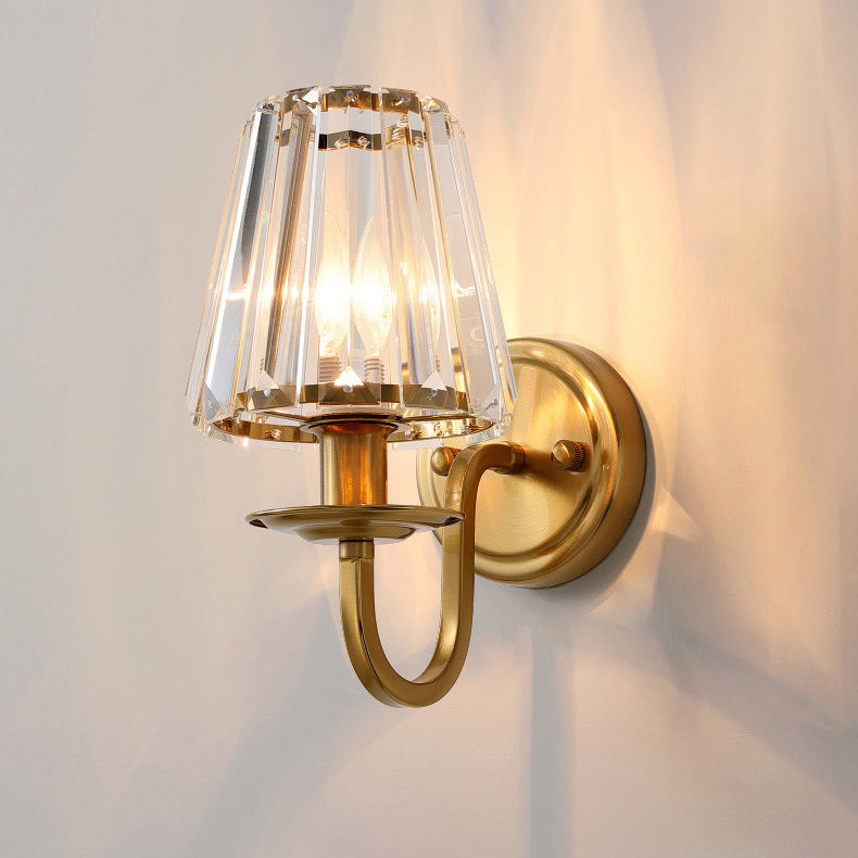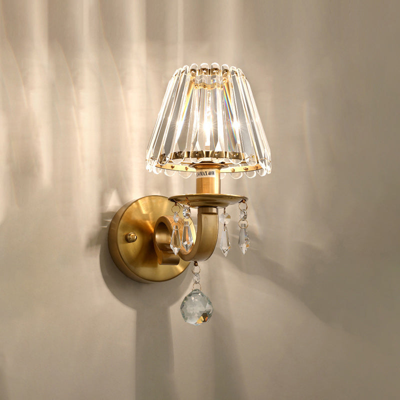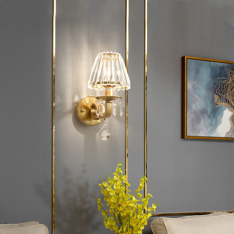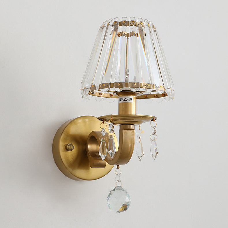 Contemporary Luxury Golden Finish Frame Crystal Shade 1-Light Wall Sconce Lamp For Living Room