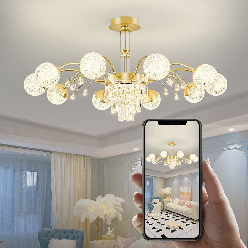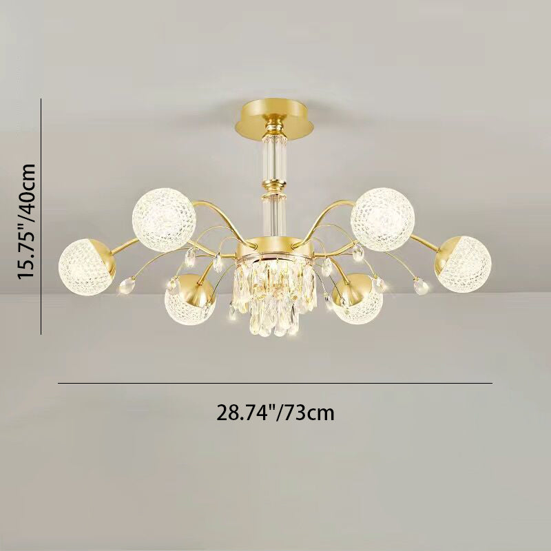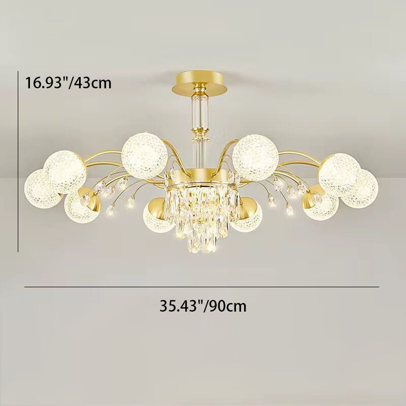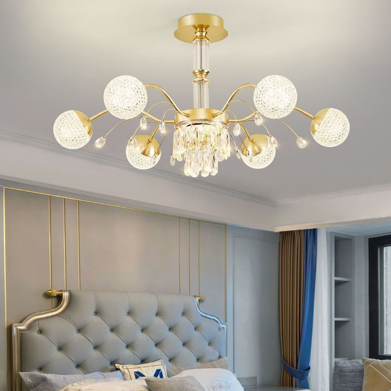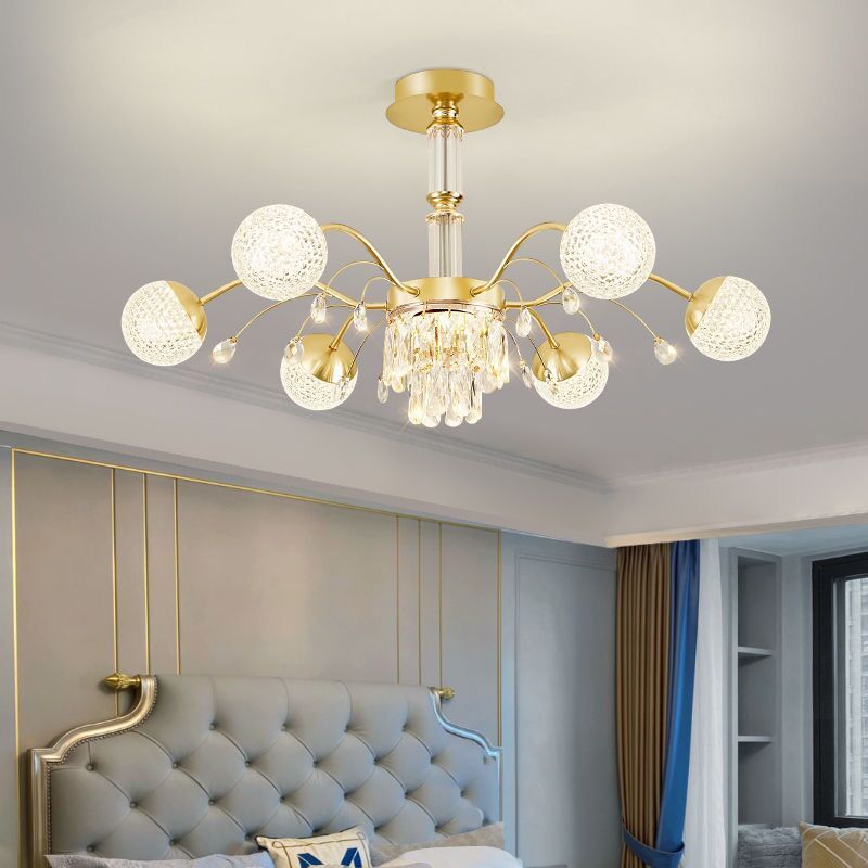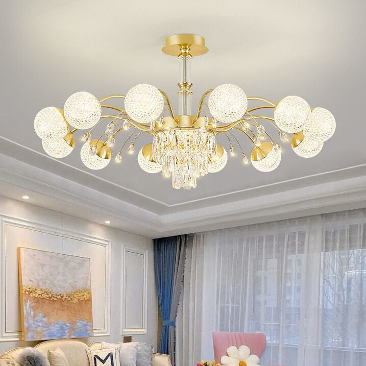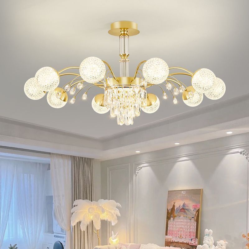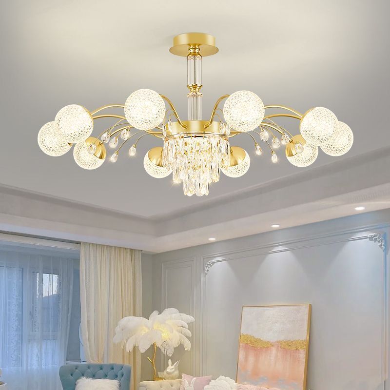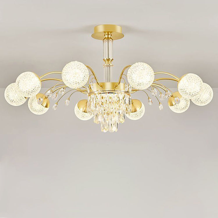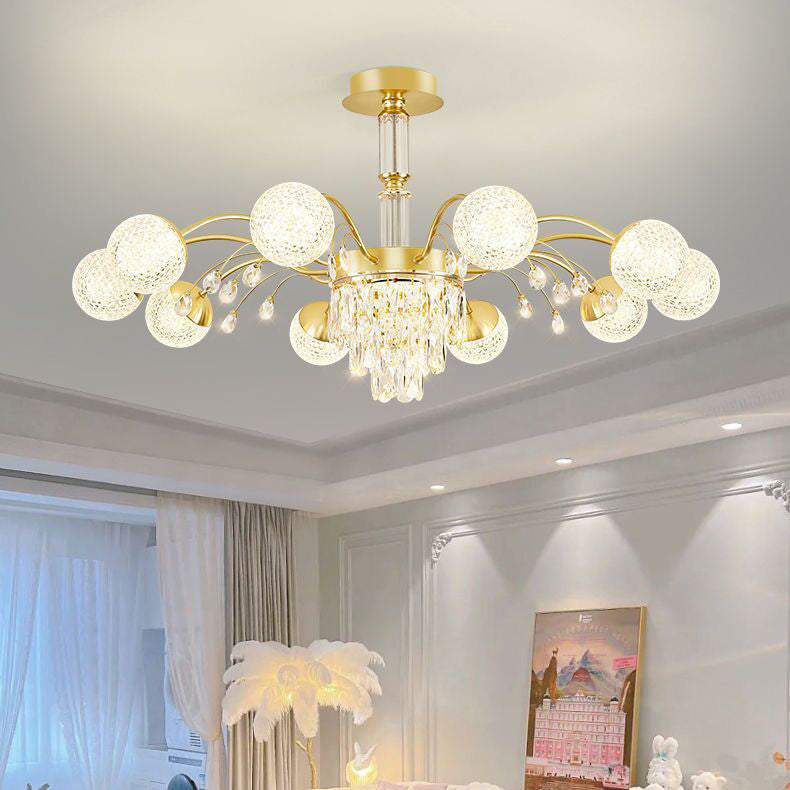 Contemporary Luxury Iron Crystal Glass Ball Branches 6/8/10/12-Light Chandelier For Living Room