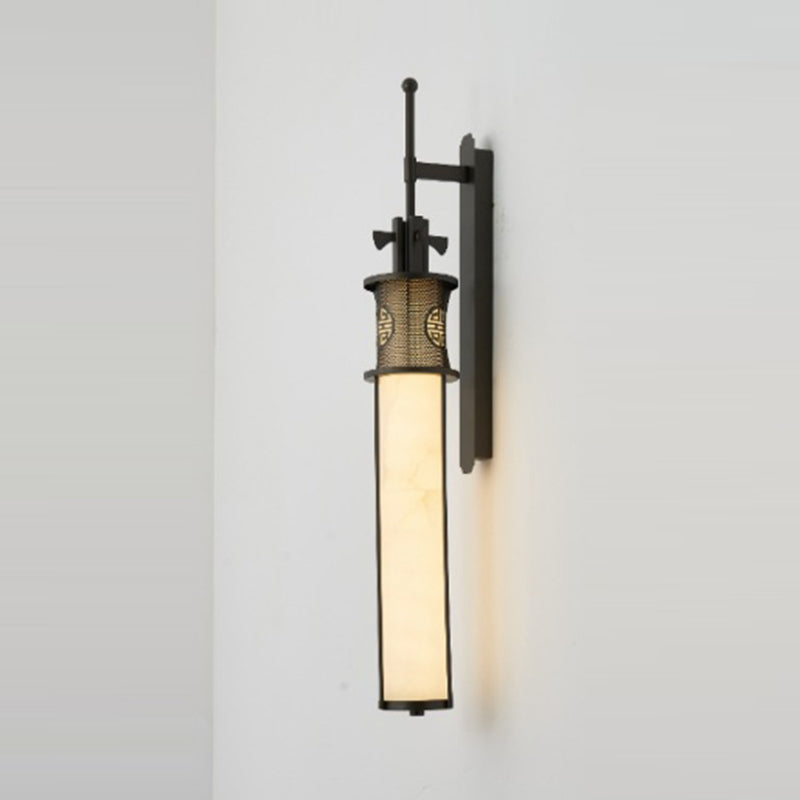 Contemporary Luxury Iron Long Pole Marble Cylinder Shade LED Wall Sconce Lamp For Living Room