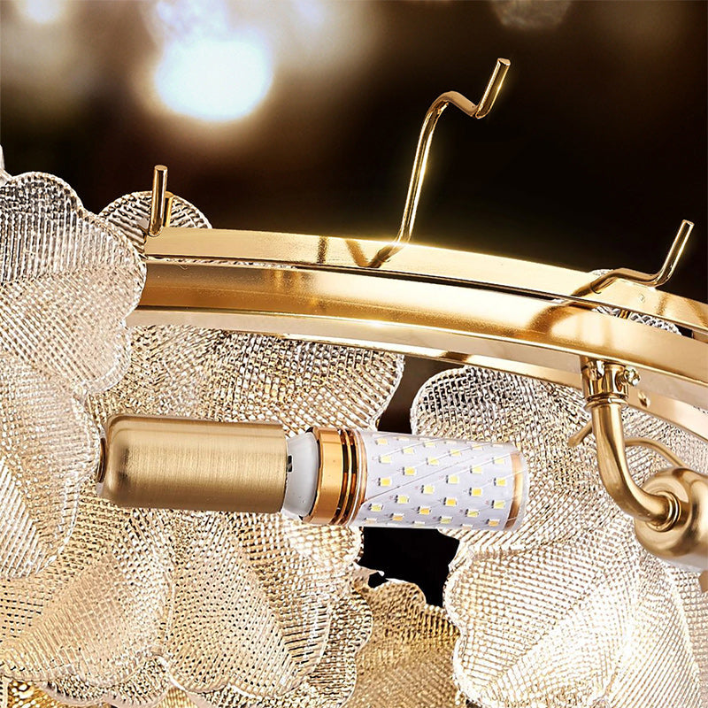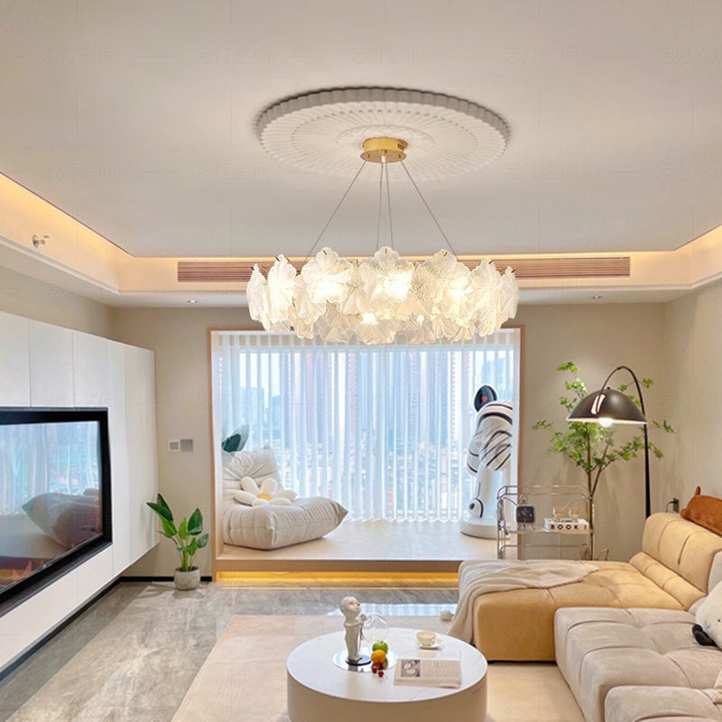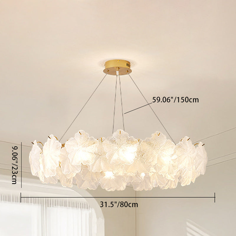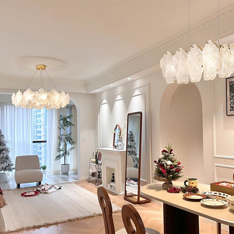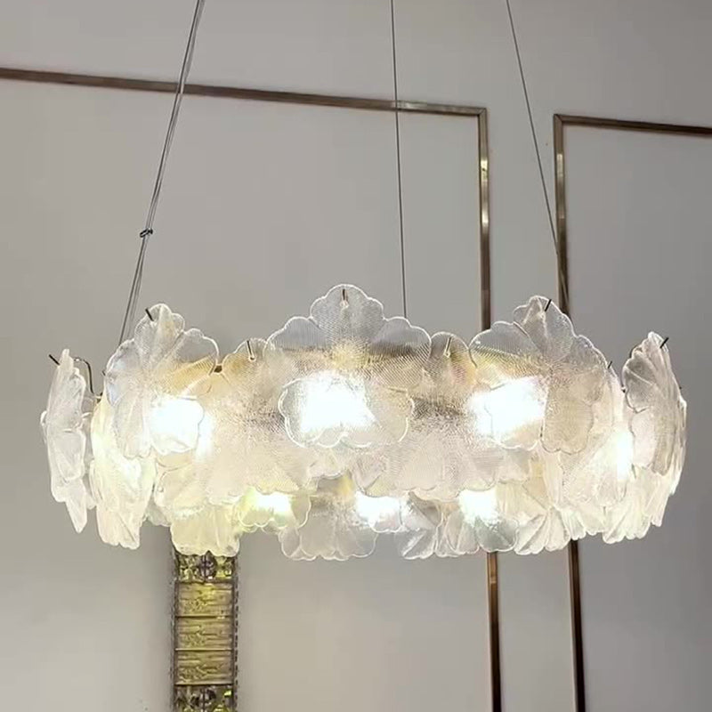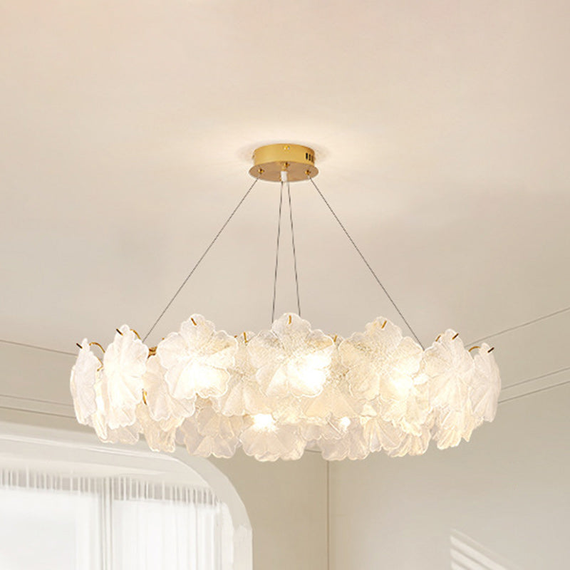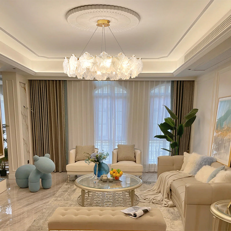 Contemporary Luxury Iron Snowflake Leaf Glass Shade 10-Light Chandelier For Living Room
