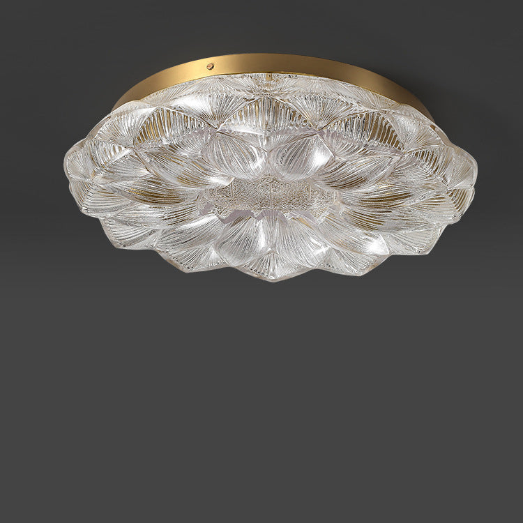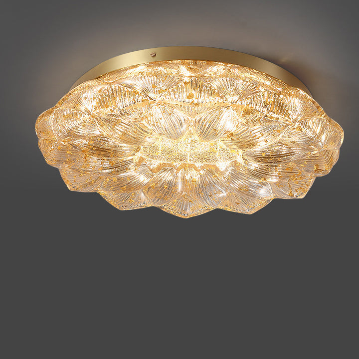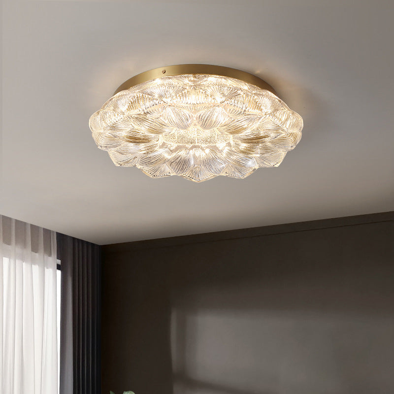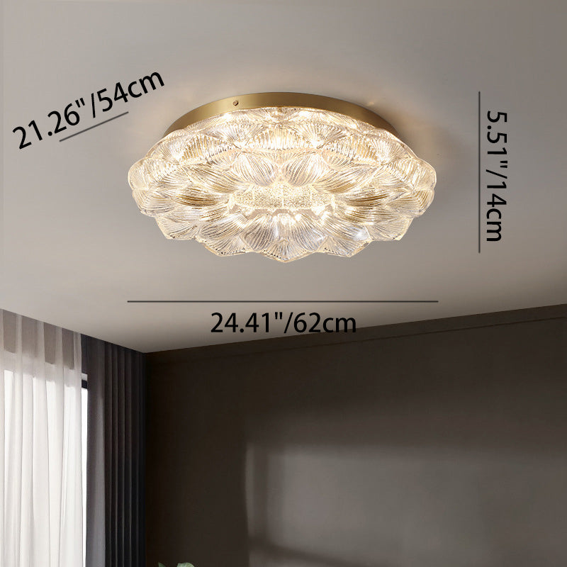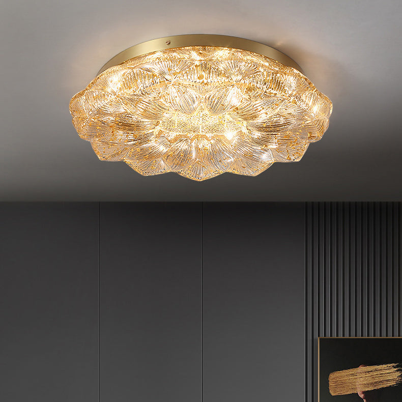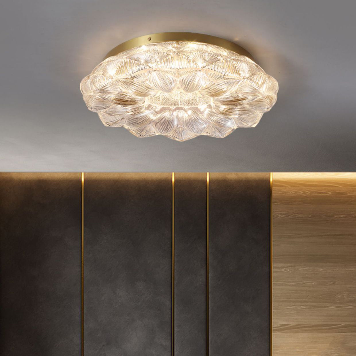 Contemporary Luxury Lotus Shape Stainless Steel Gold Leaf Copper Resin LED Semi-Flush Mount Ceiling Light For Living Room