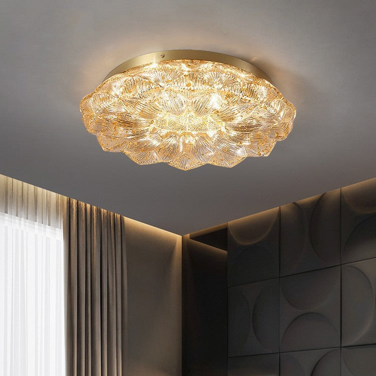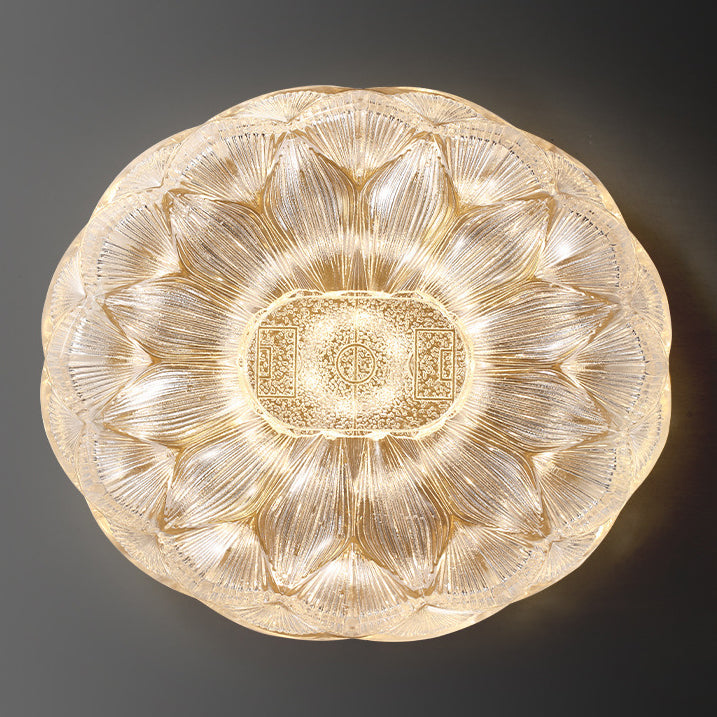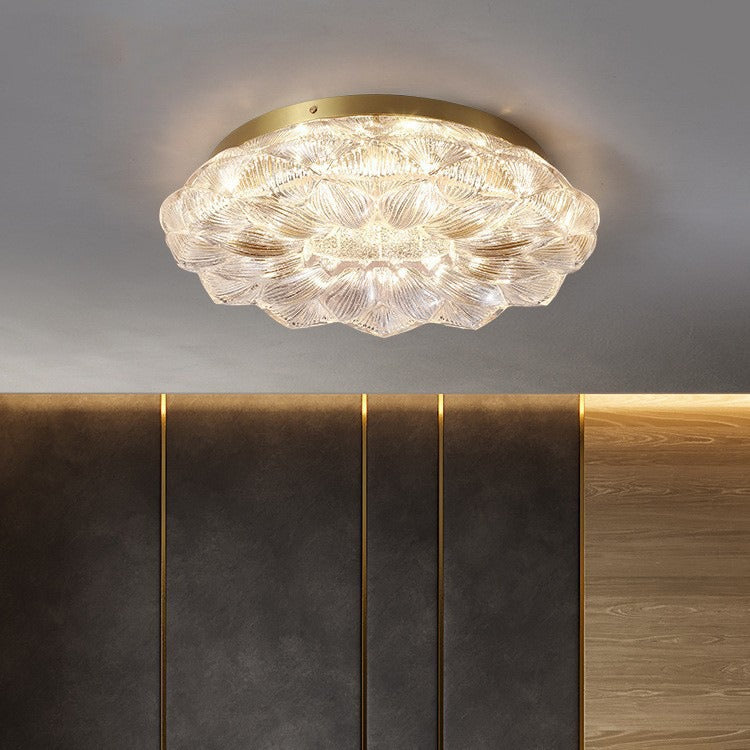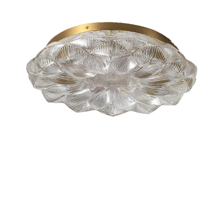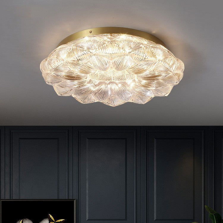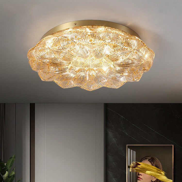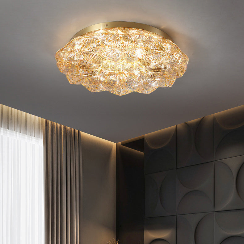Contemporary Luxury Lotus Shape Stainless Steel Gold Leaf Copper Resin LED Semi-Flush Mount Ceiling Light For Living Room
