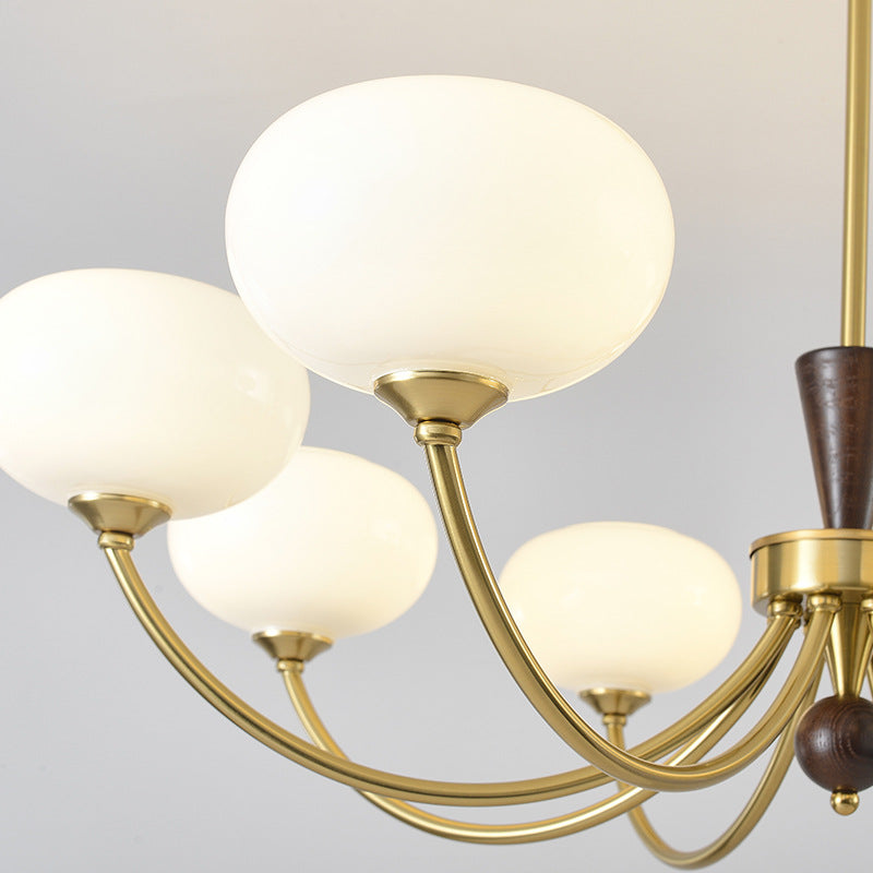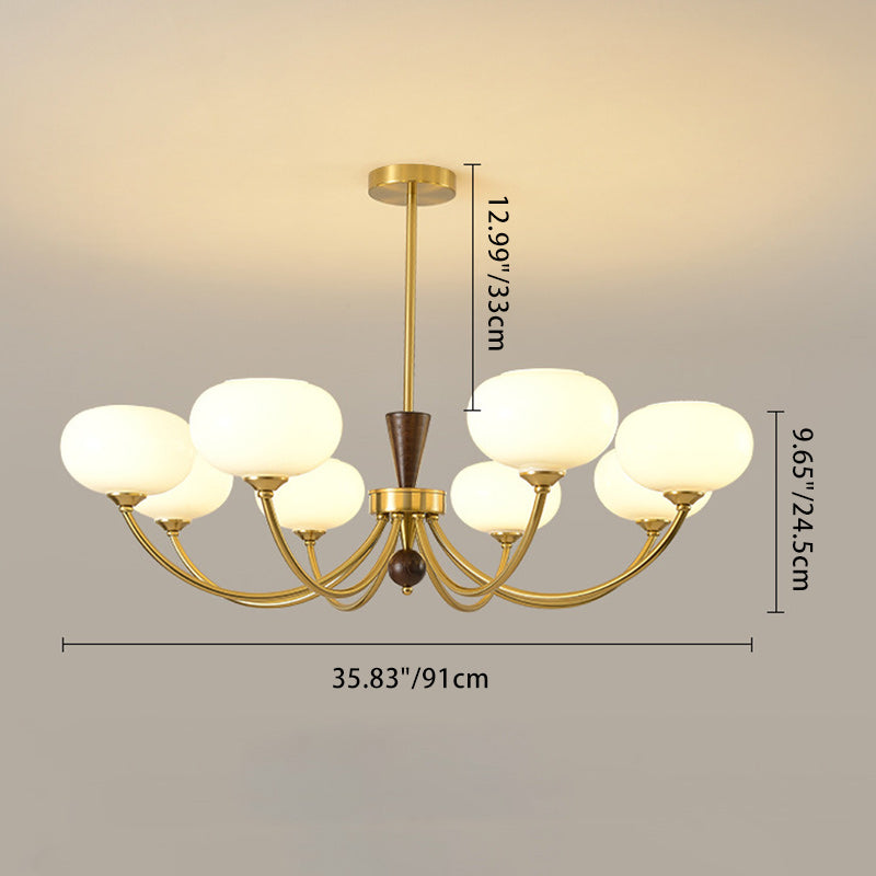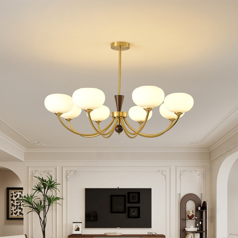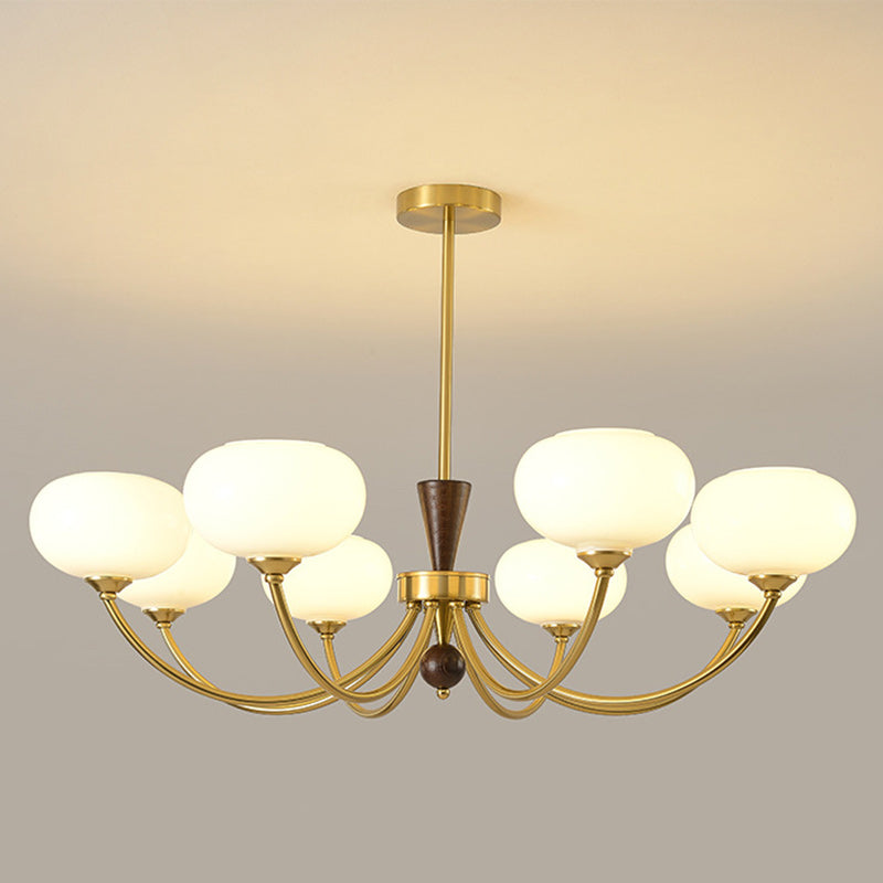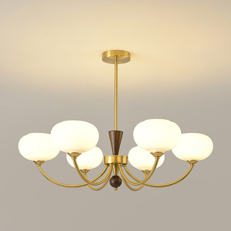 Contemporary Luxury Oval Wood Iron Glass 6/8-Light Chandelier For Living Room