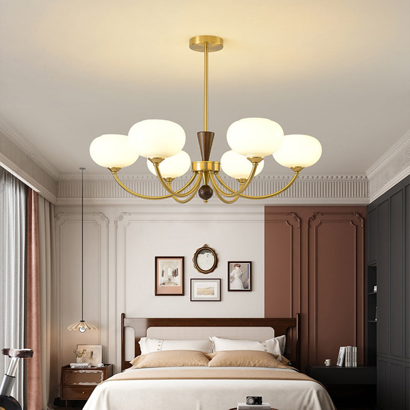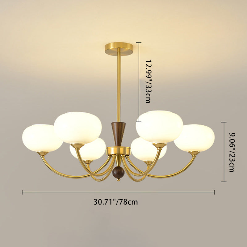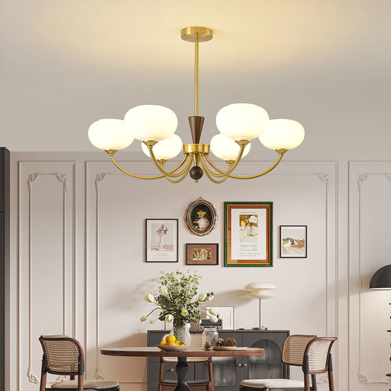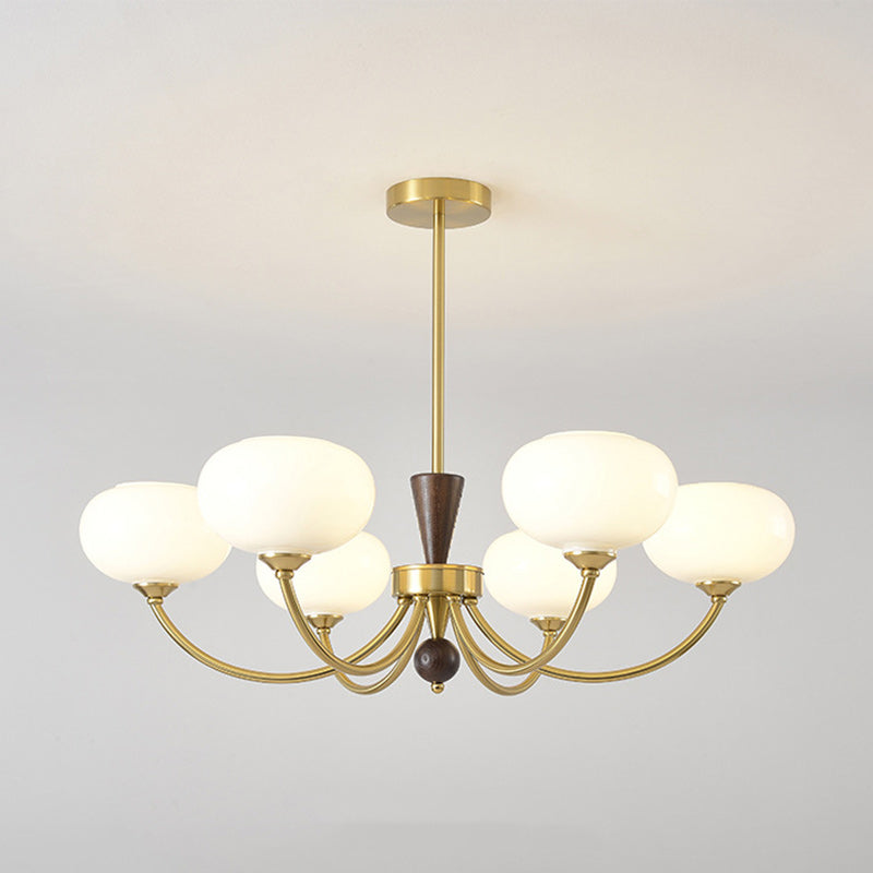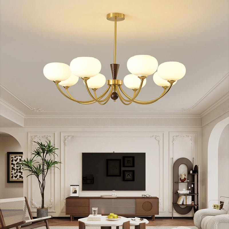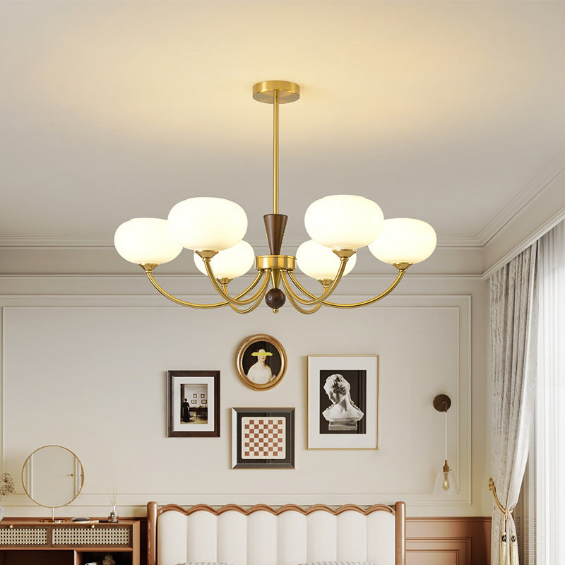 Contemporary Luxury Oval Wood Iron Glass 6/8-Light Chandelier For Living Room
