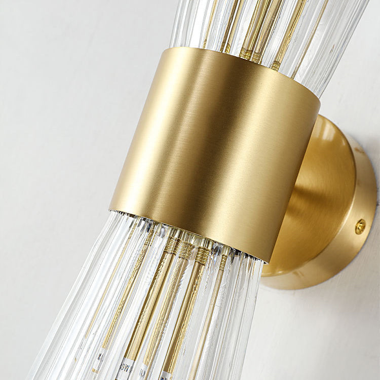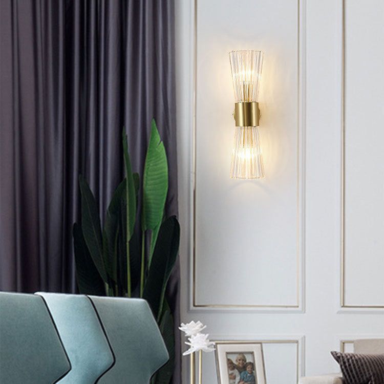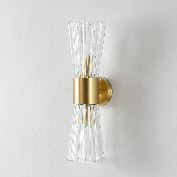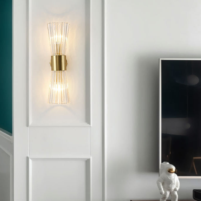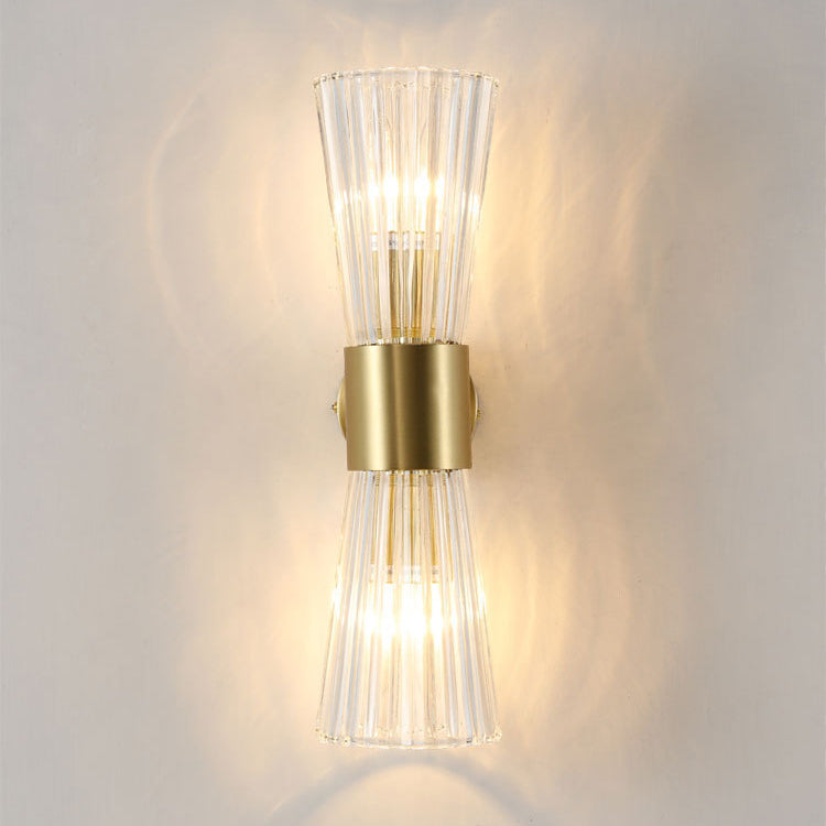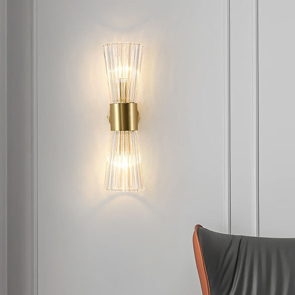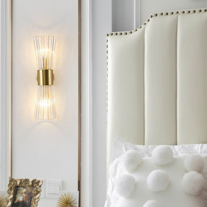 Contemporary Luxury Ribbed Crystal Up And Down Luminous 2-Light Wall Sconce Lamp For Bedroom