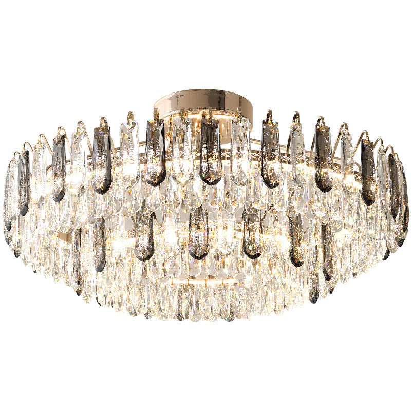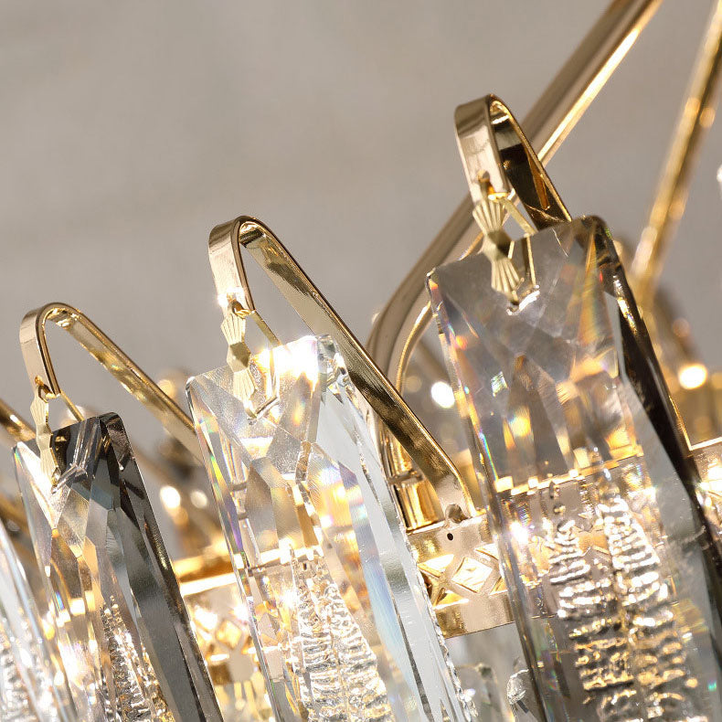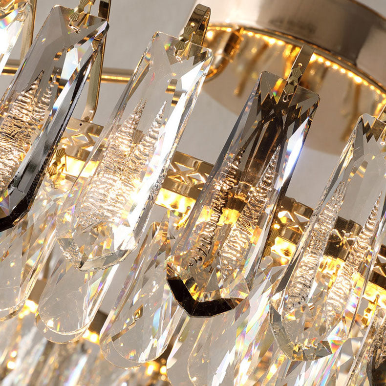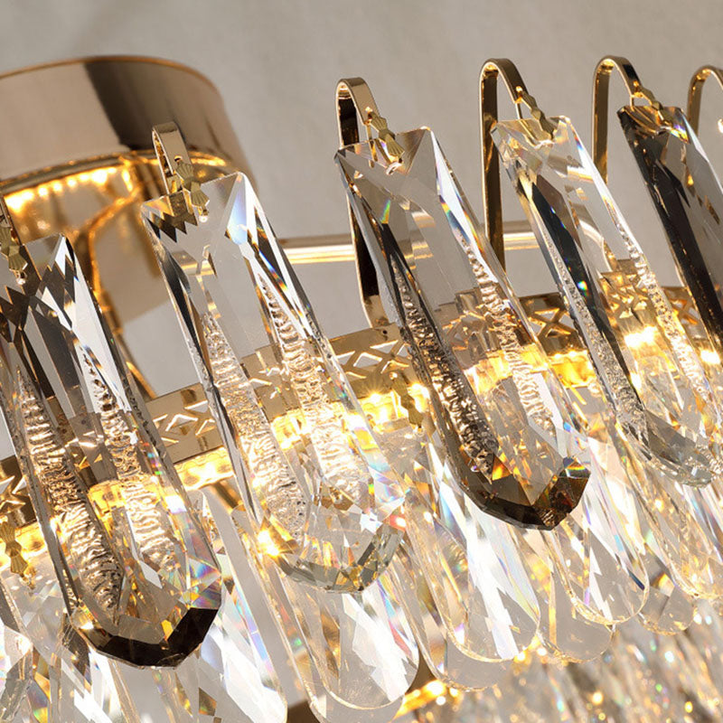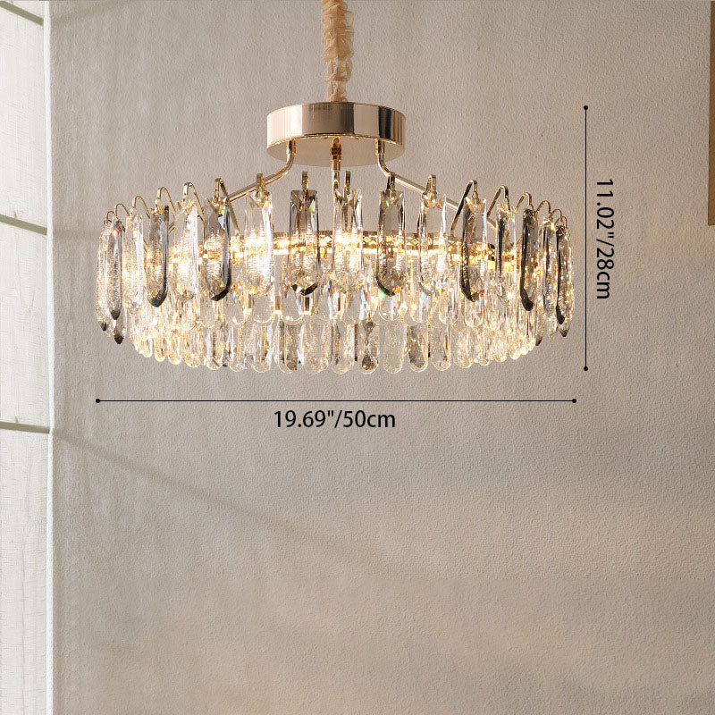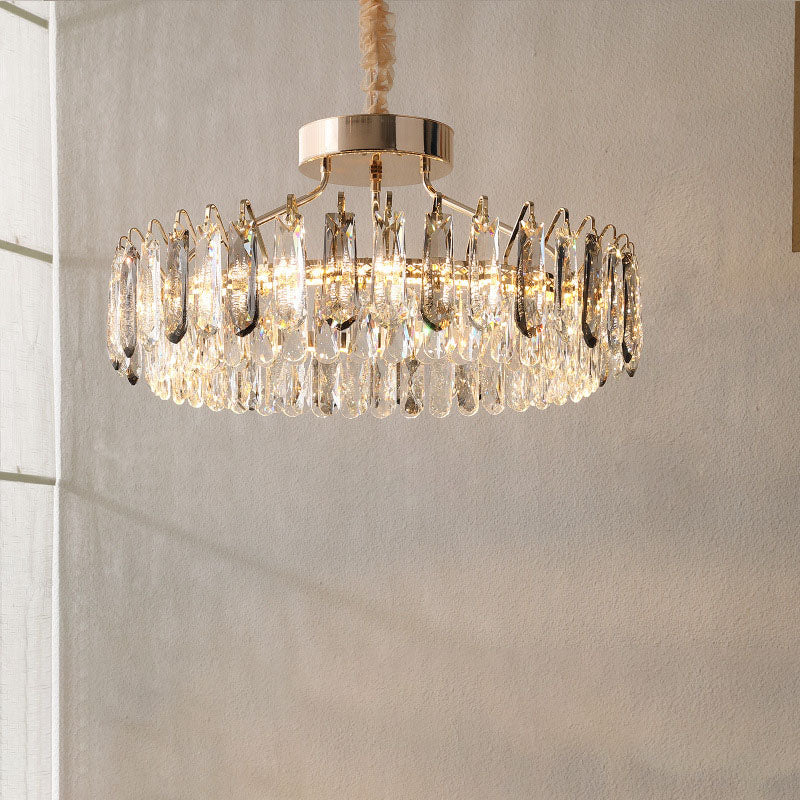 Contemporary Luxury Round Crystal Gold Finish Frame LED Pendant Light For Living Room