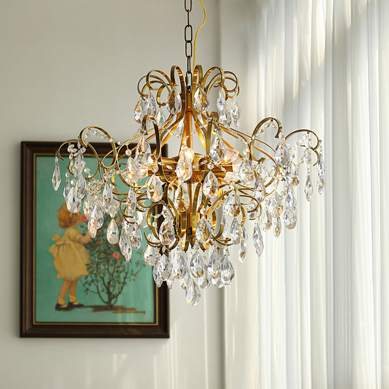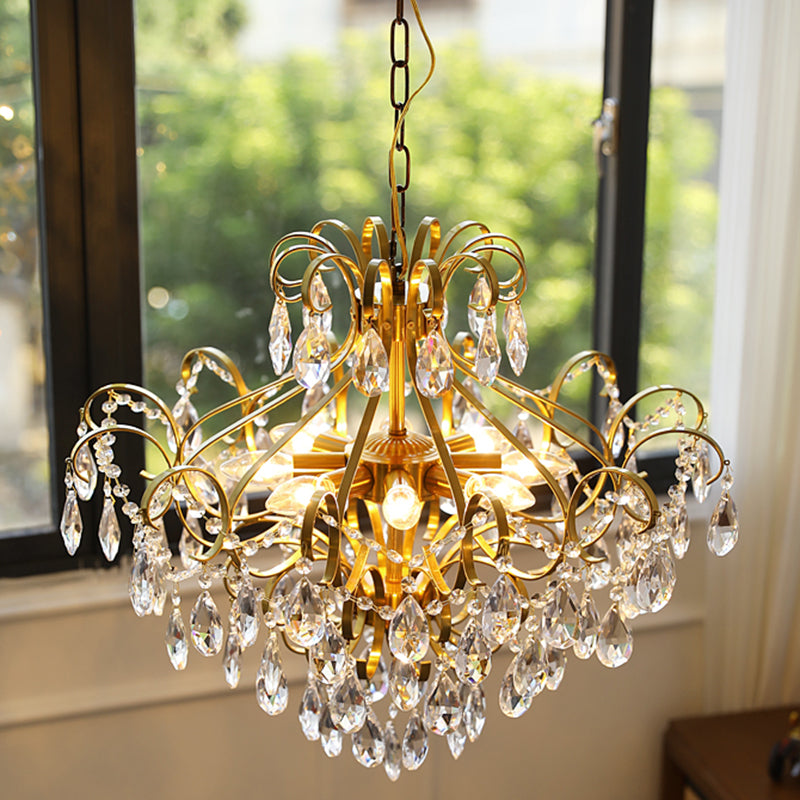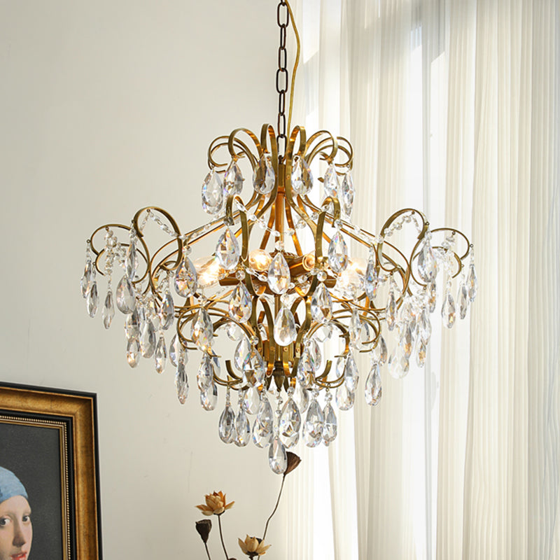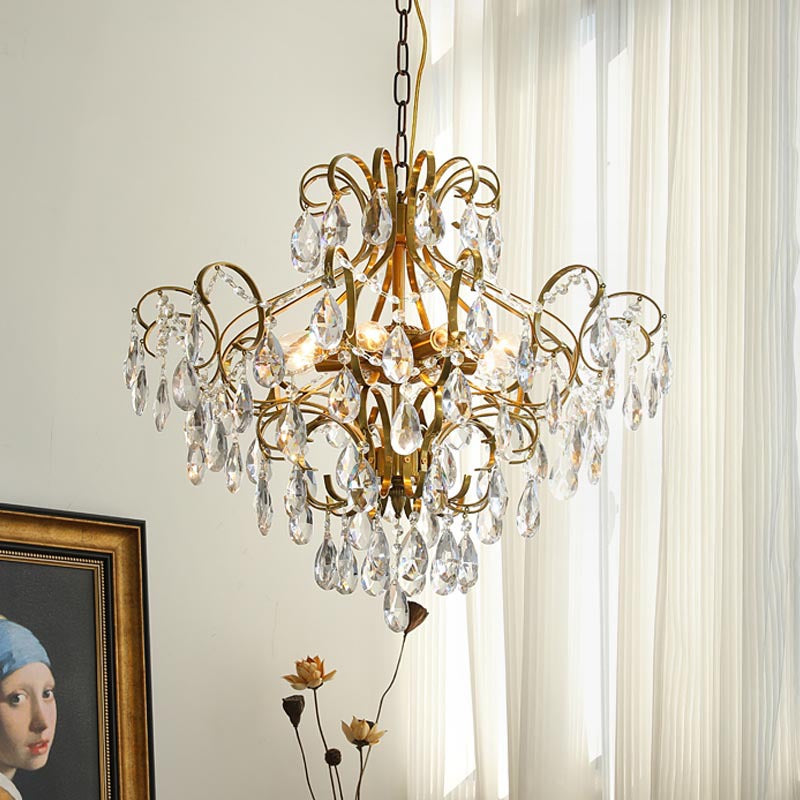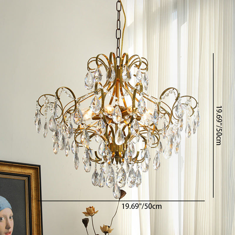 Contemporary Luxury Teardrop Copper Crystal 6-Light Chandelier For Living Room