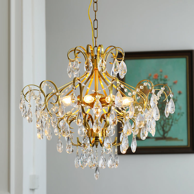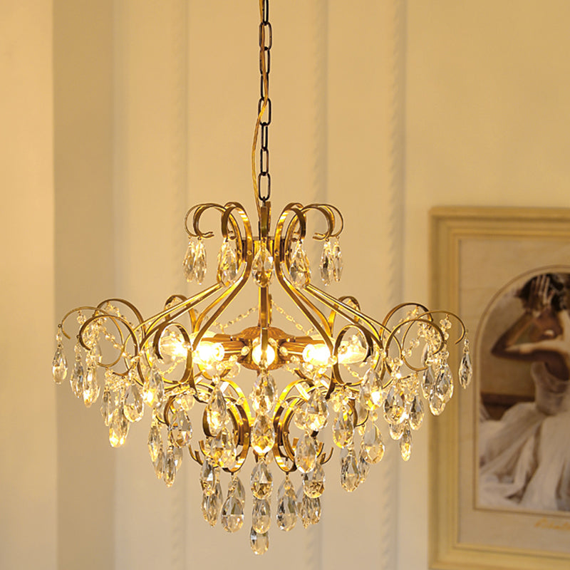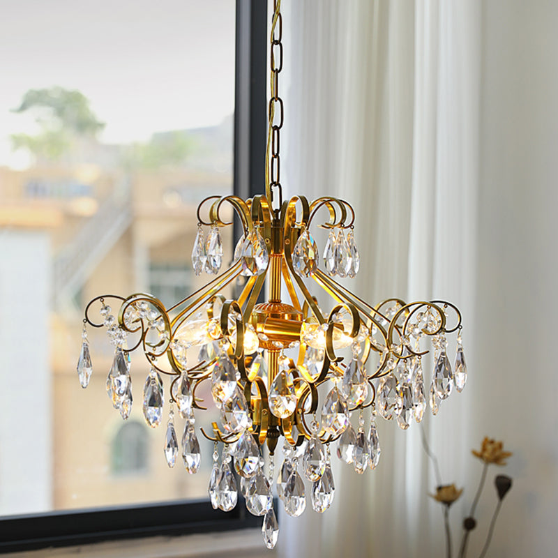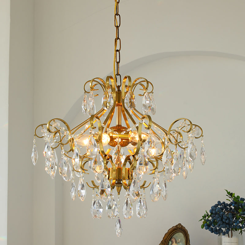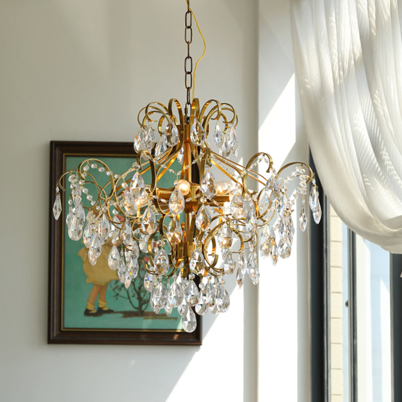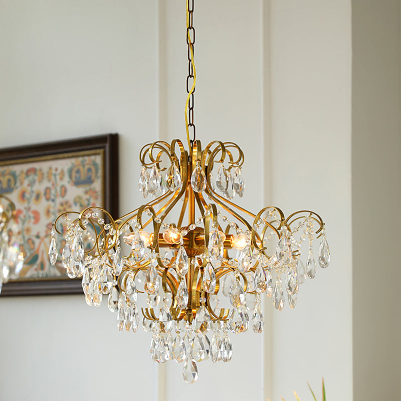 Contemporary Luxury Teardrop Copper Crystal 6-Light Chandelier For Living Room