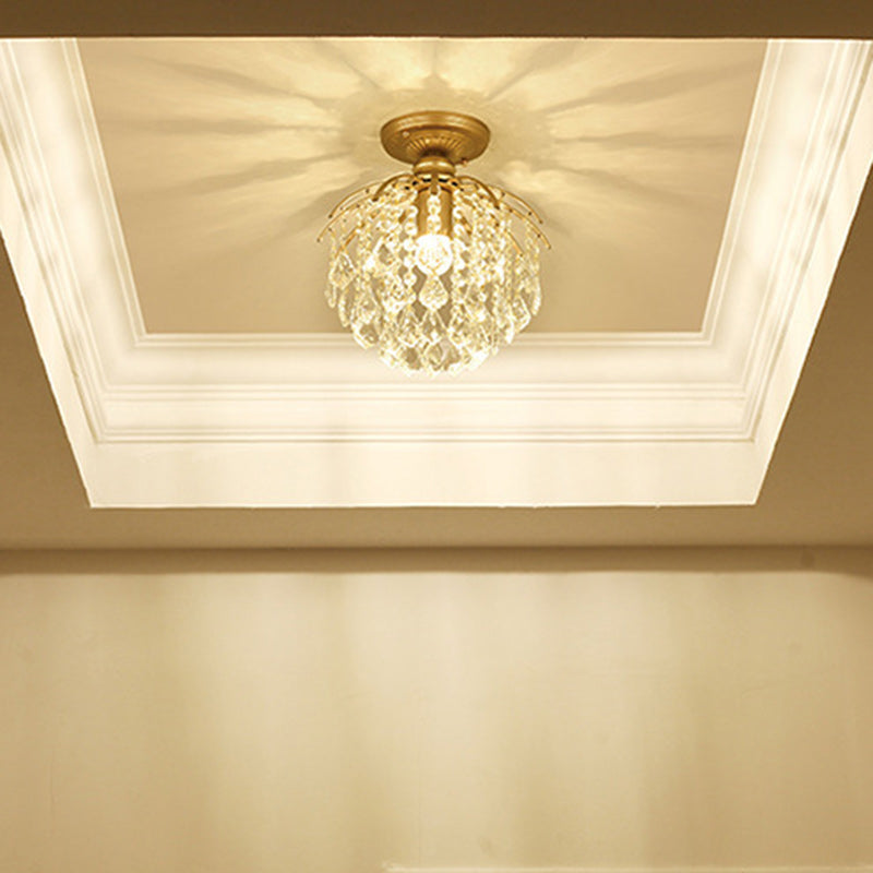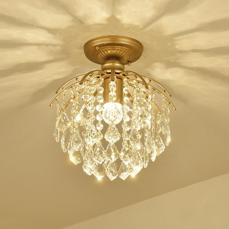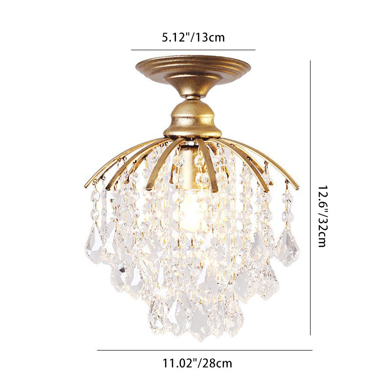 Contemporary Luxury Teardrop Iron Crystal 1-Light Semi-Flush Mount Ceiling Light For Living Room