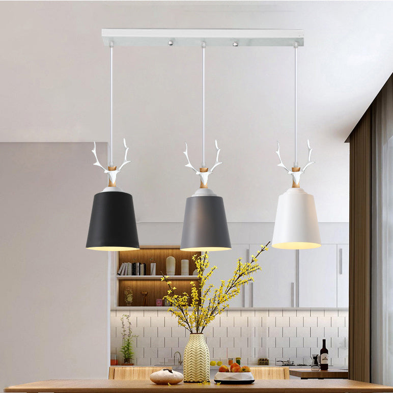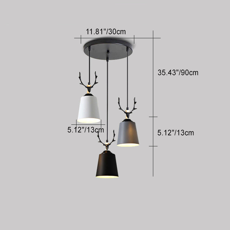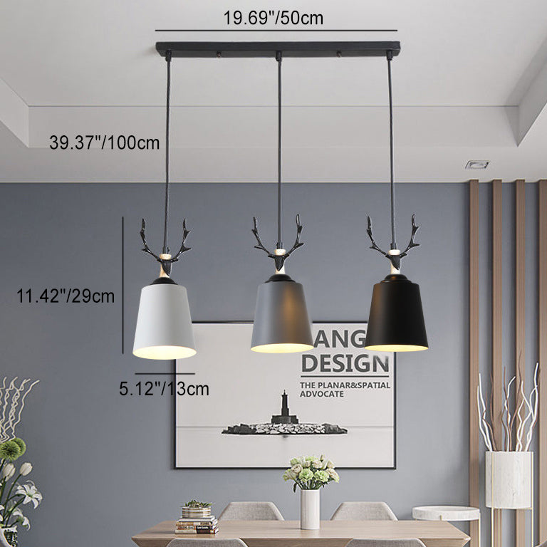 Contemporary Nordic Antler Iron Cylinder Shade Solid Wood 3 - Light Chandeliers For Dining Room