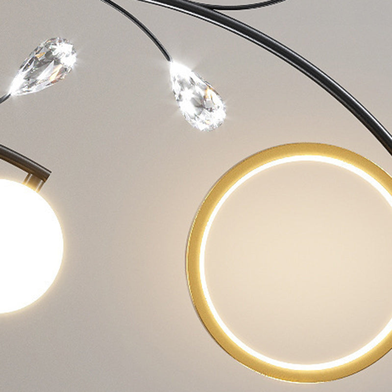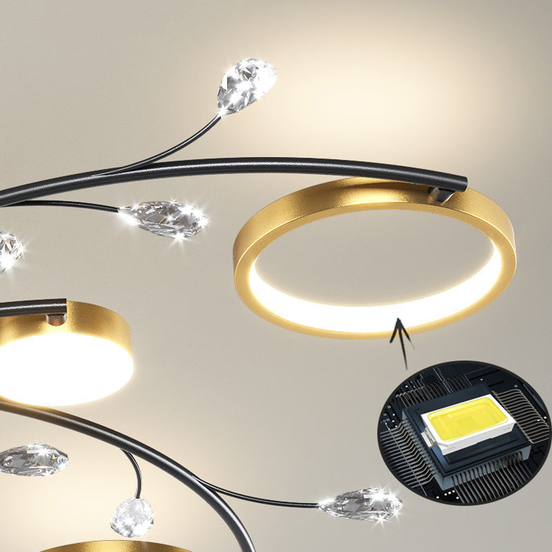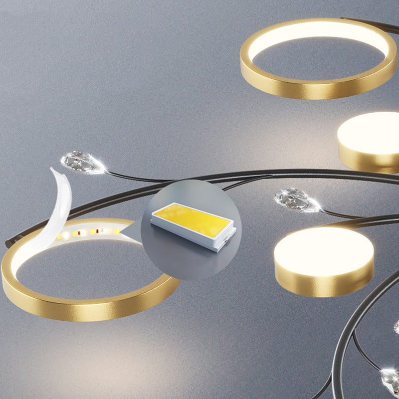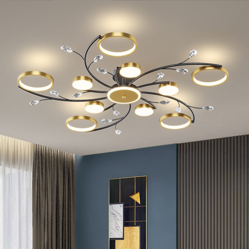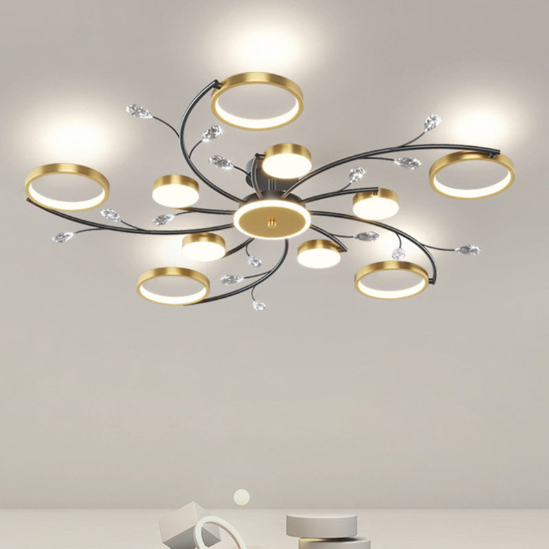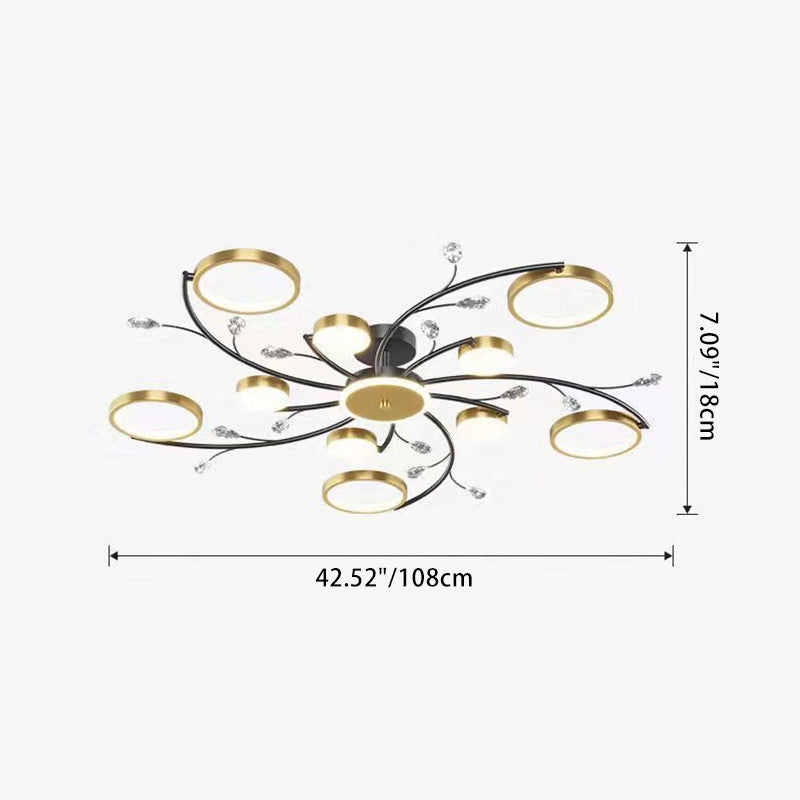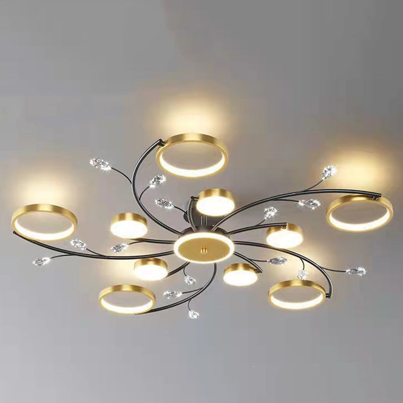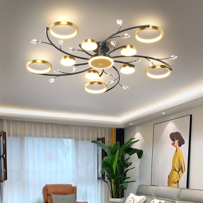 Contemporary Nordic Blossom Round Metal Acrylic Silicone Crystal LED Semi-Flush Mount Ceiling Light For Living Room