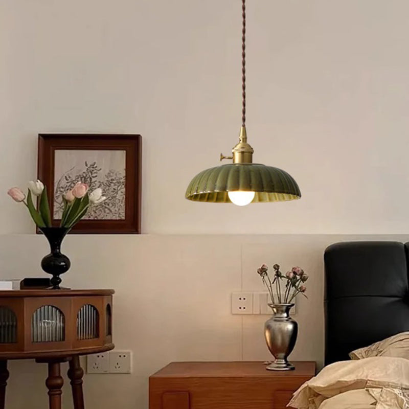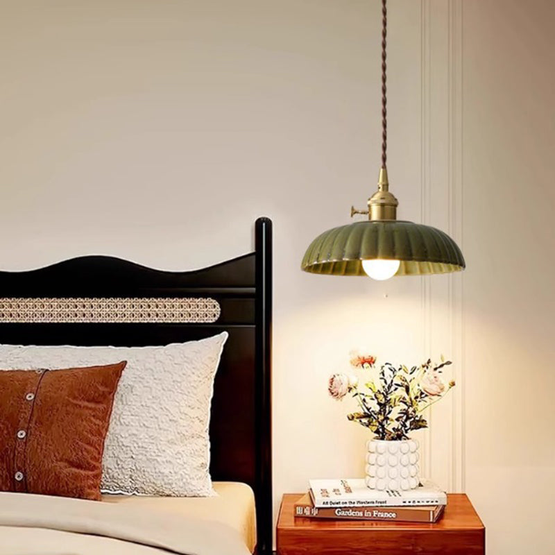 Contemporary Nordic Bowl-Shaped Iron Aluminum Ceramic 1-Light Pendant Light For Bedroom