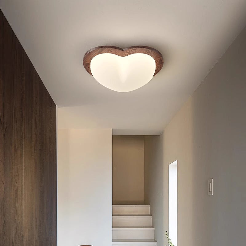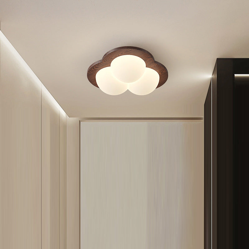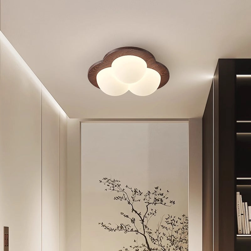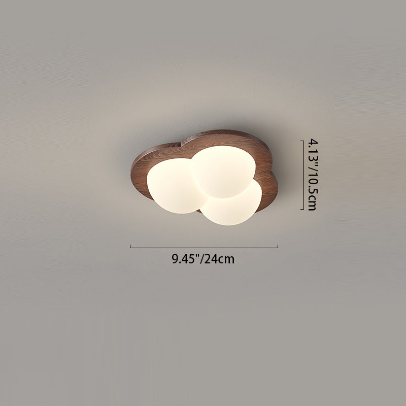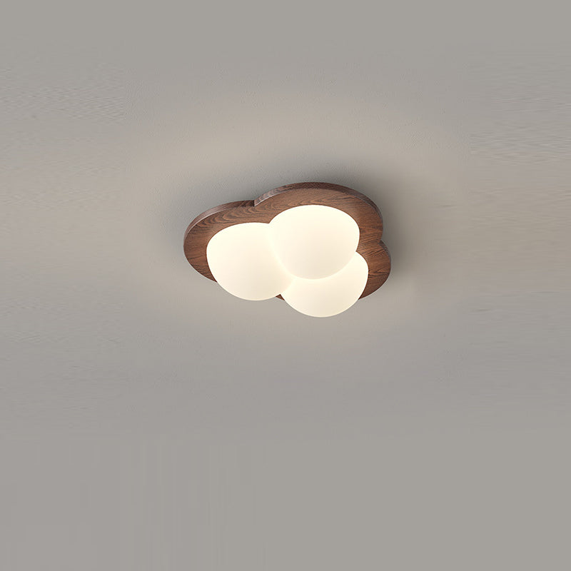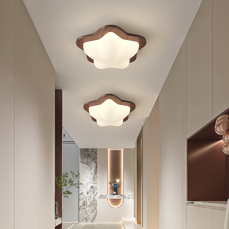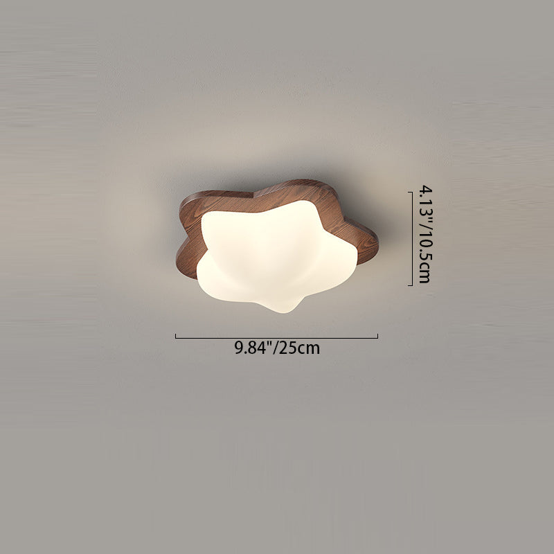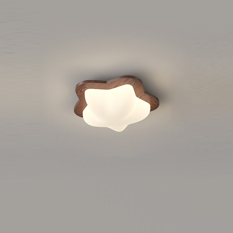 Contemporary Nordic Bubble Star PE Shade Walnut Wood Grain LED Flush Mount Ceiling Light For Bedroom