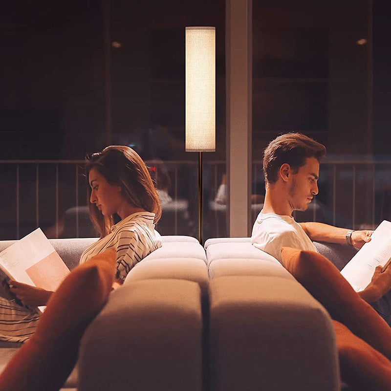 Contemporary Nordic Column Iron Fabric 1-Light Standing Floor Lamp For Living Room