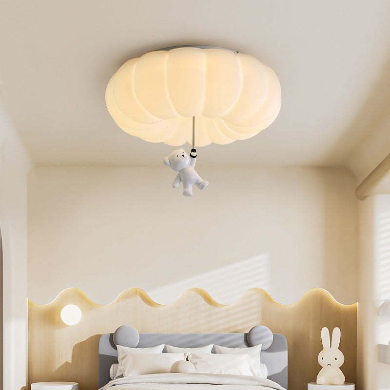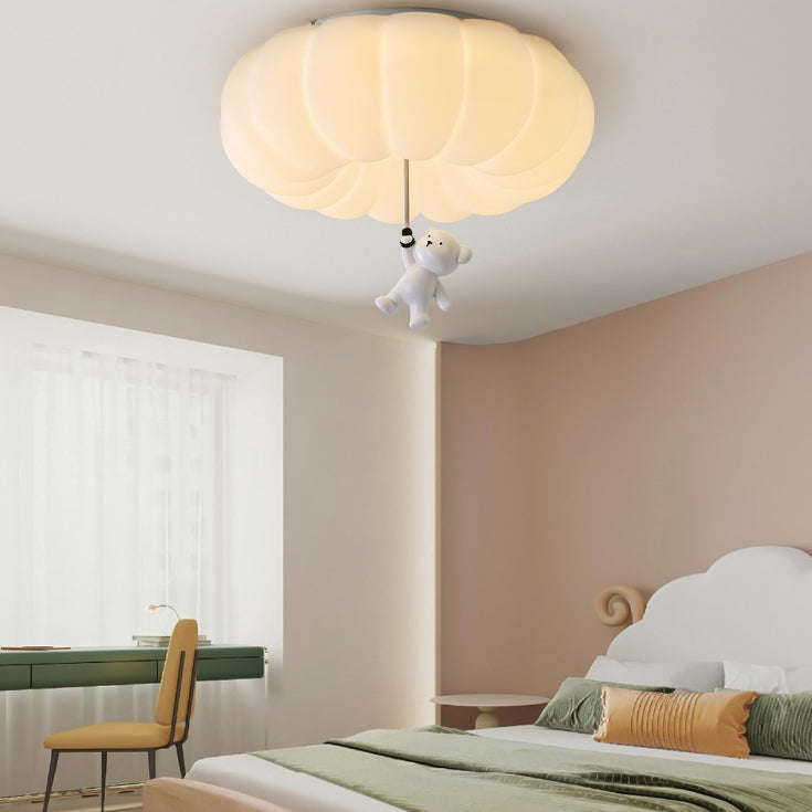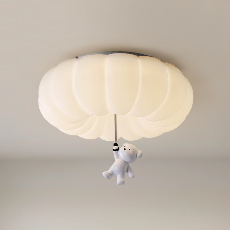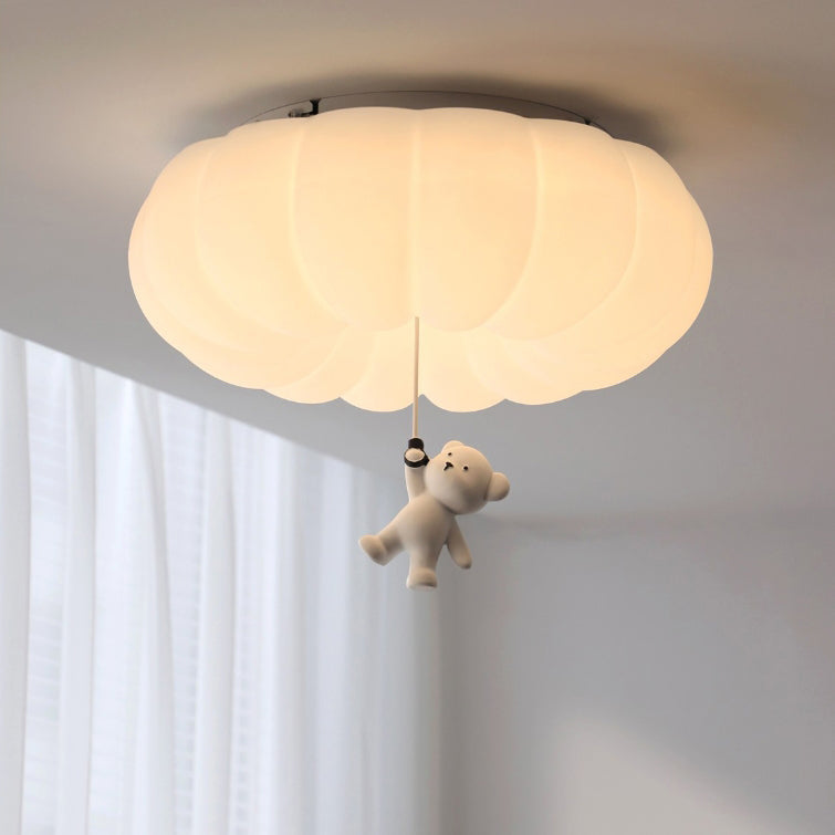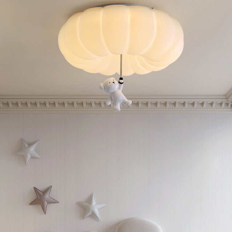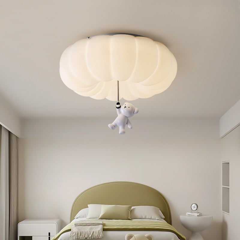 Contemporary Nordic Cream Bear PE Hardware LED Flush Mount Ceiling Light For Bedroom