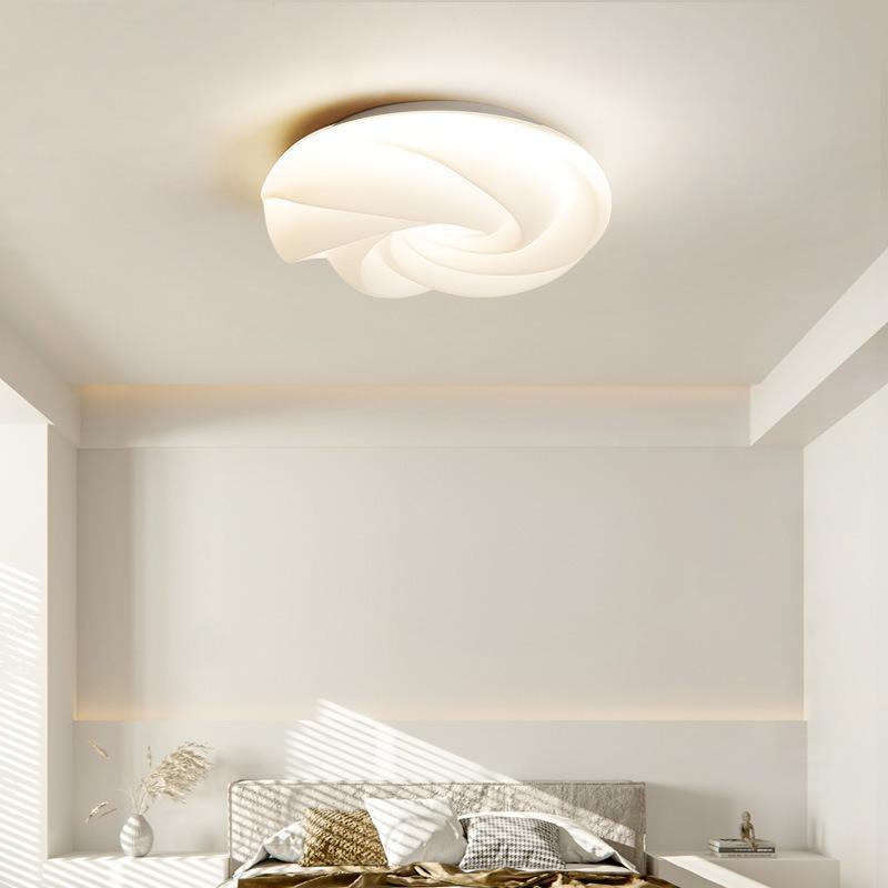 Contemporary Nordic Cream Flower Roll Acrylic Lampshade Iron LED Flush Mount Ceiling Light For Bedroom