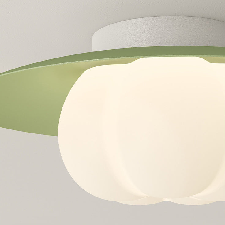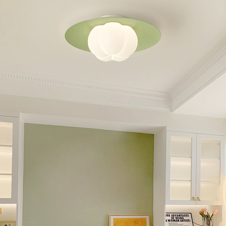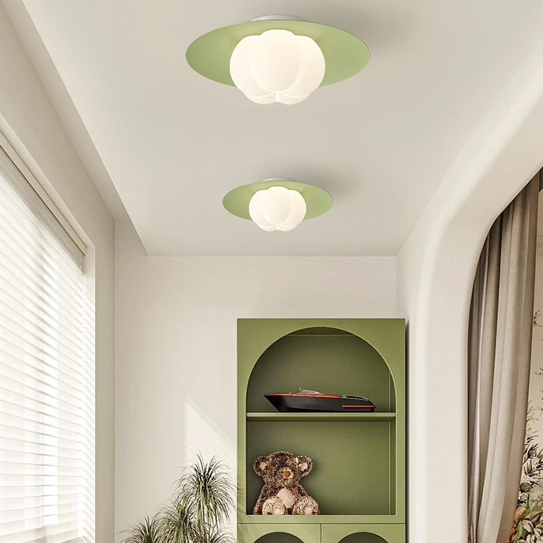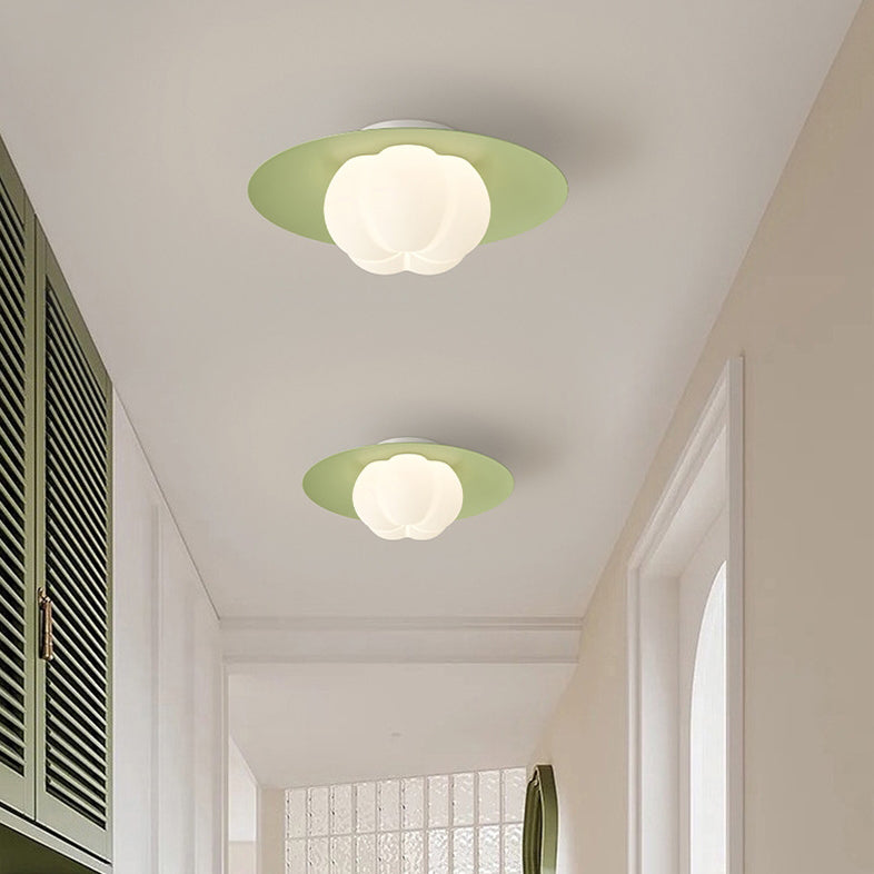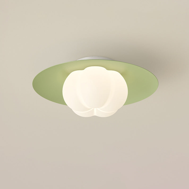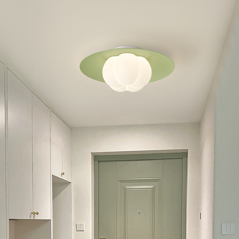 Contemporary Nordic Cream Pumpkin Disc Iron Roto-molding LED Flush Mount Ceiling Light For Hallways