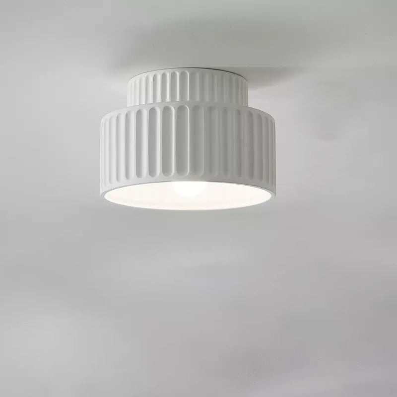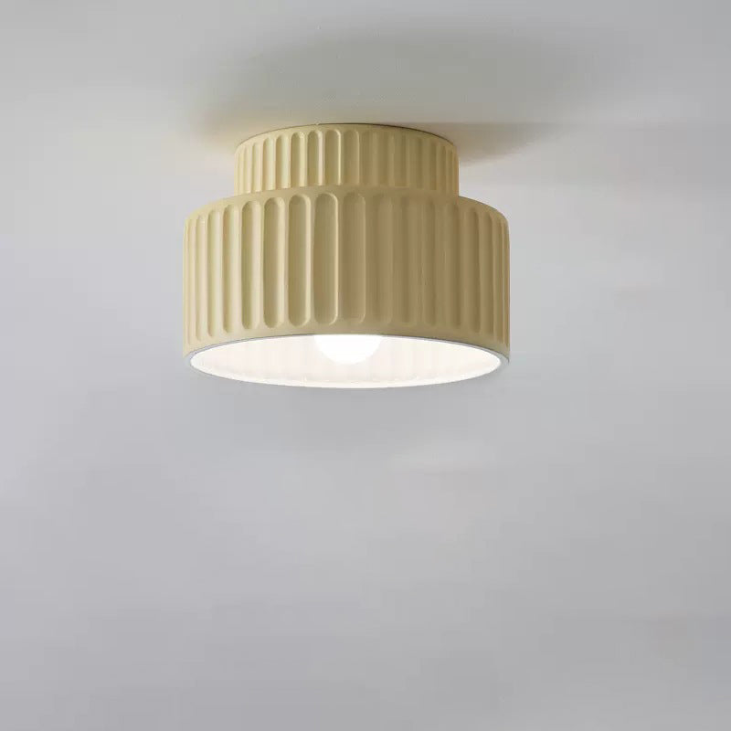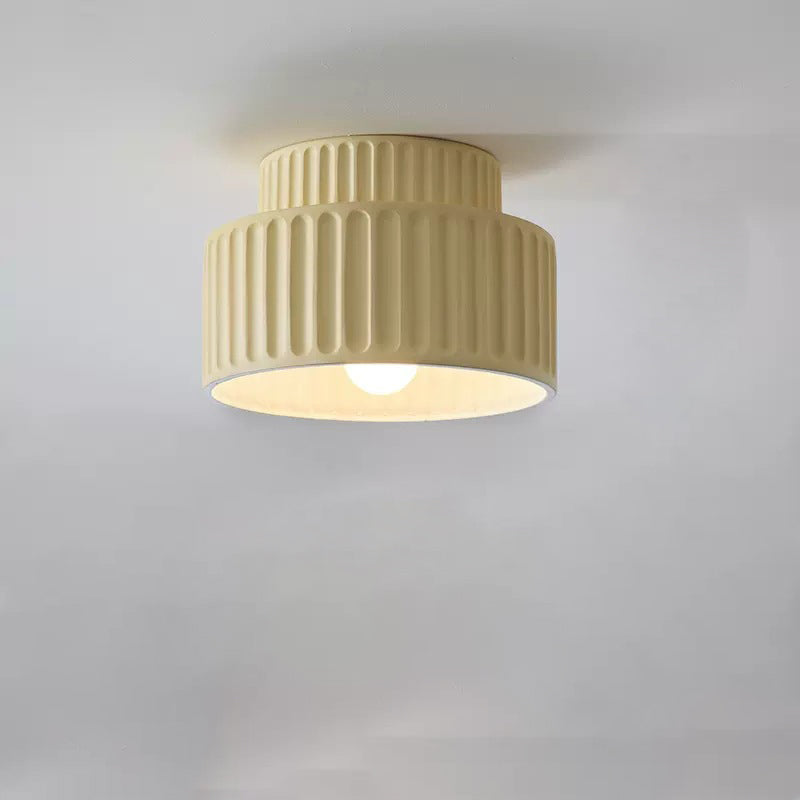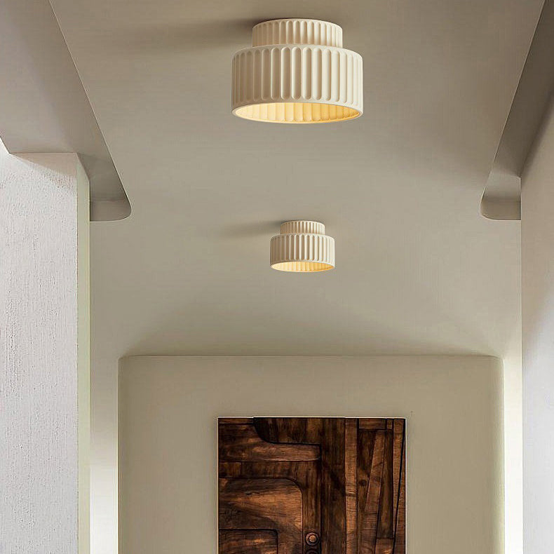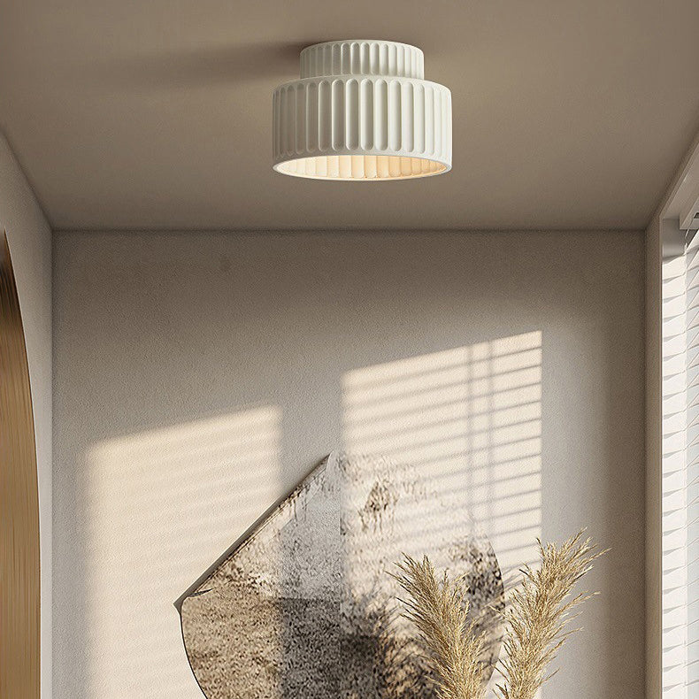 Contemporary Nordic Cream Style Ribbed Resin Round Shade 1-Light Flush Mount Ceiling Light For Bedroom