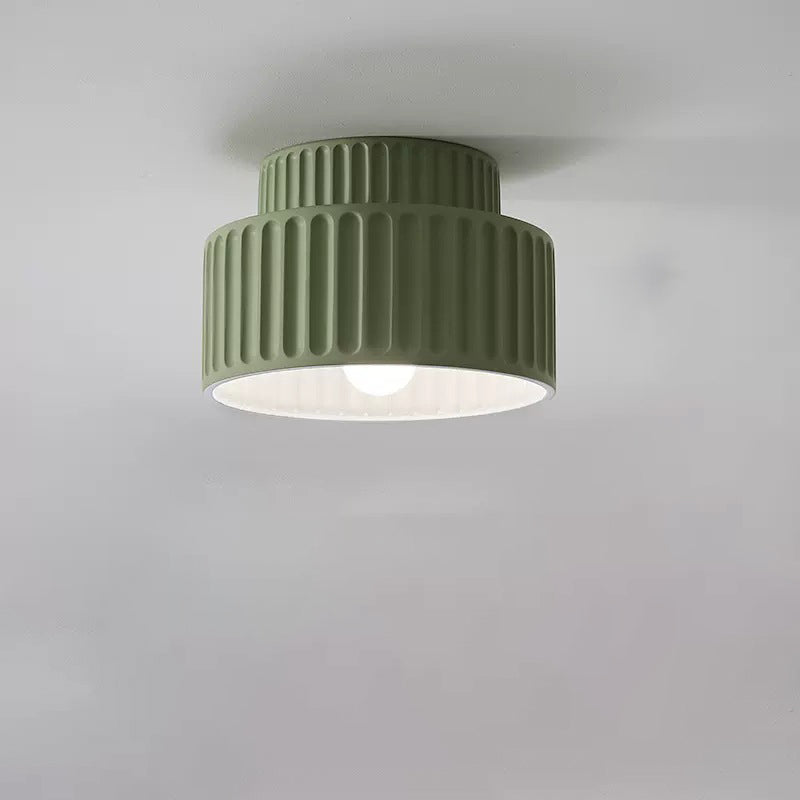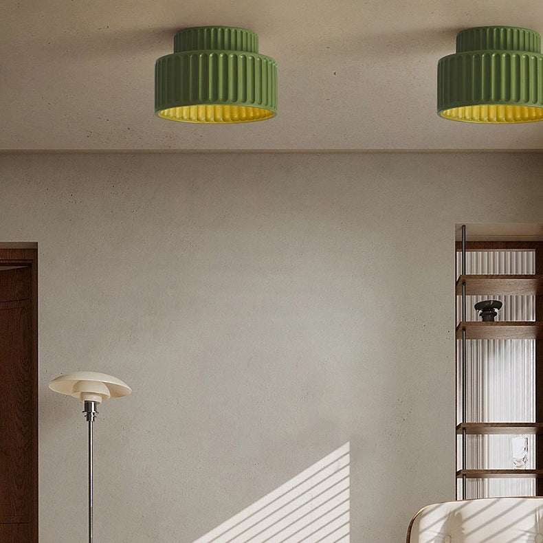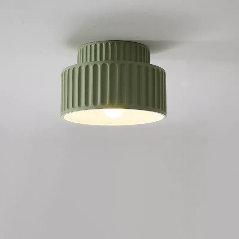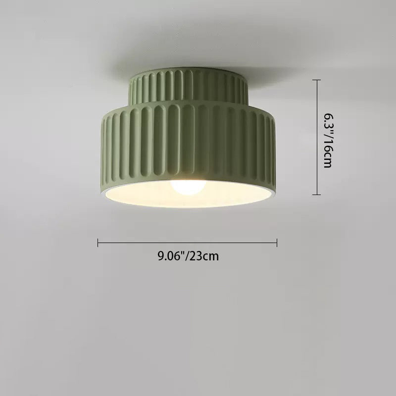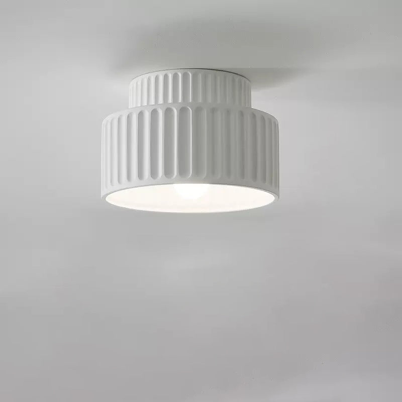 Contemporary Nordic Cream Style Ribbed Resin Round Shade 1-Light Flush Mount Ceiling Light For Bedroom