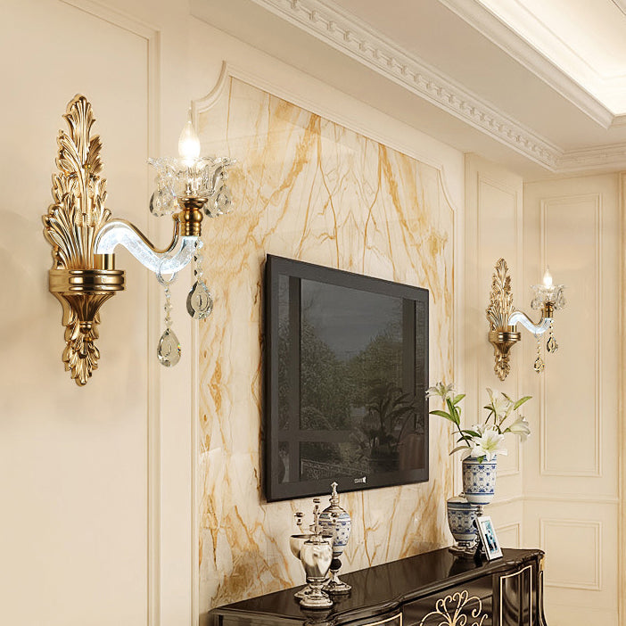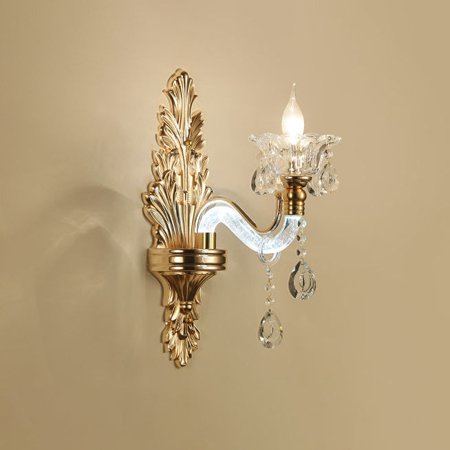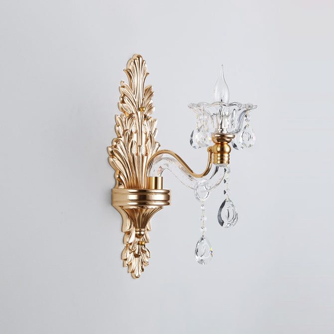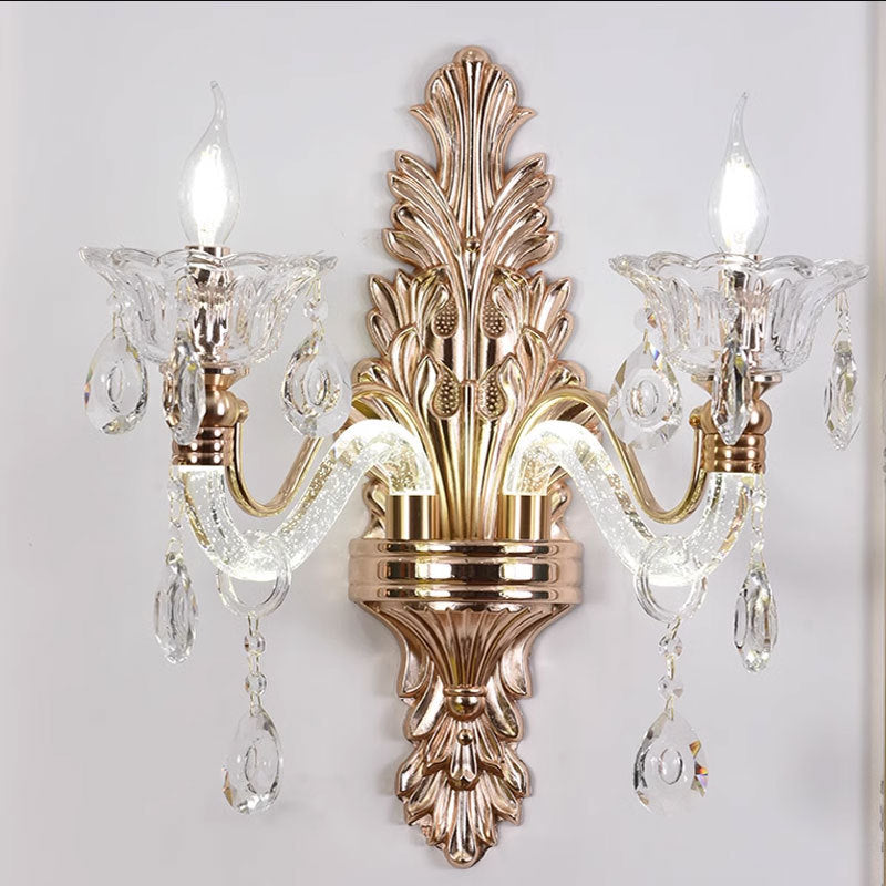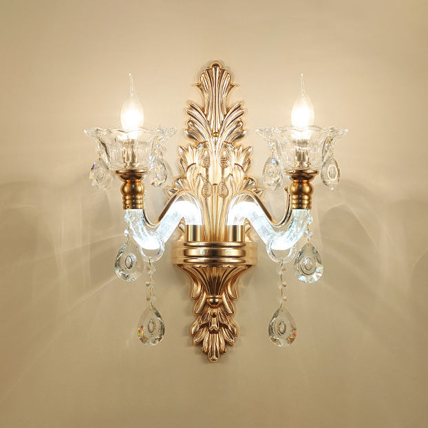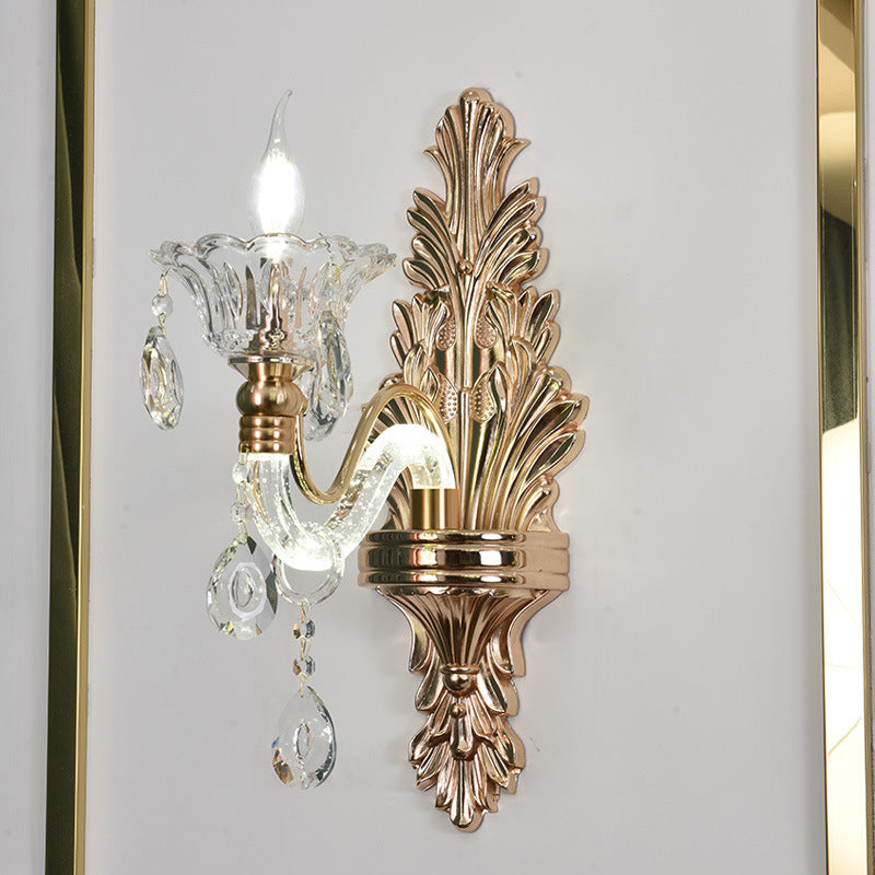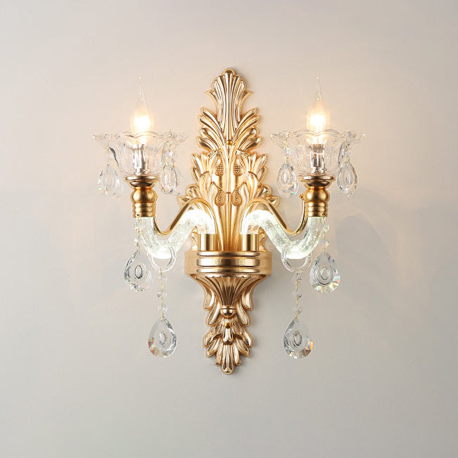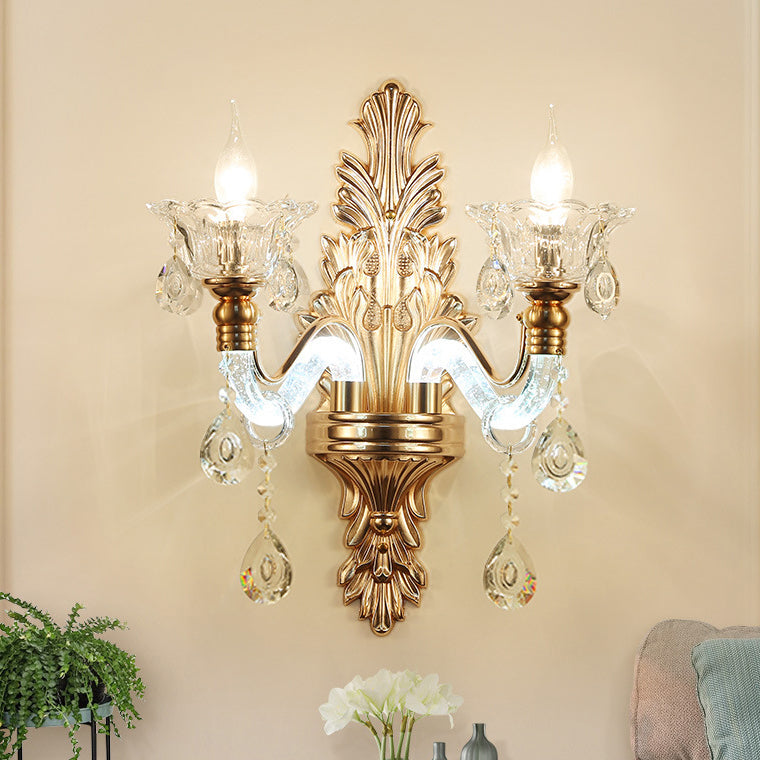 Contemporary Nordic Crystal Flower Candlestick 1/2-Light Wall Sconce Lamp For Living Room