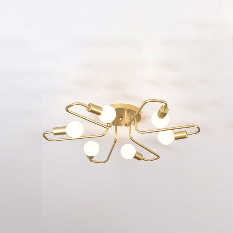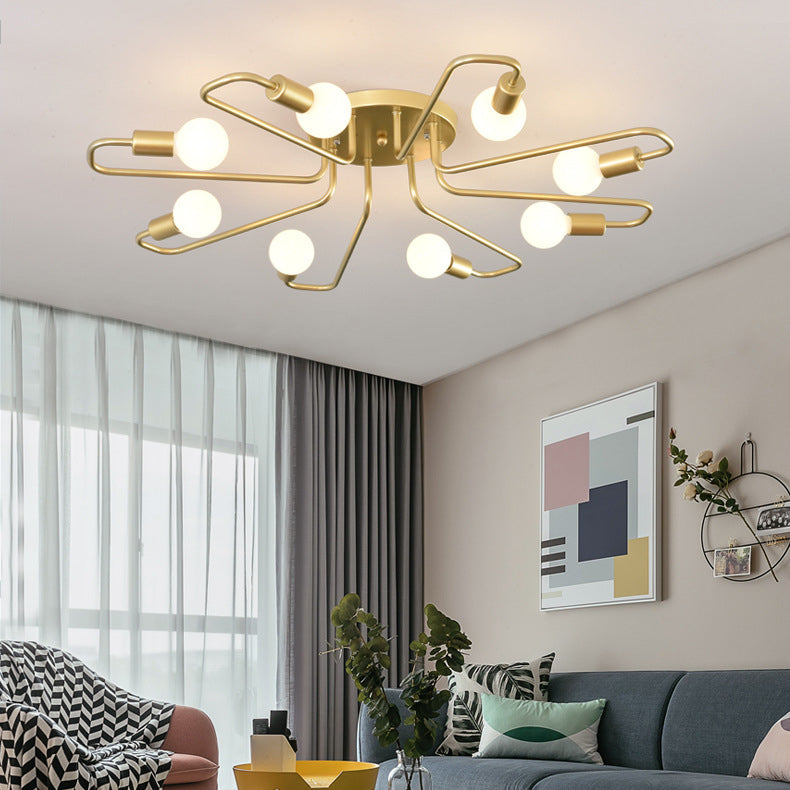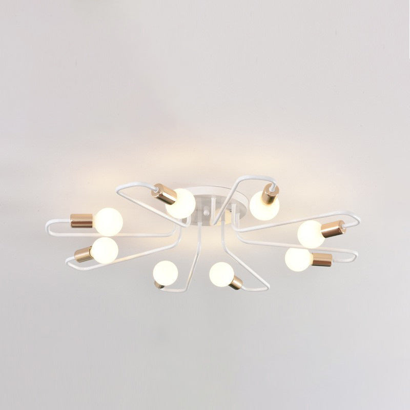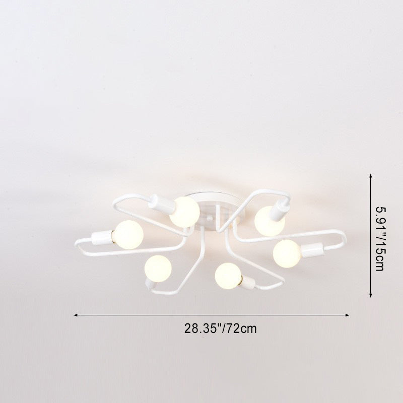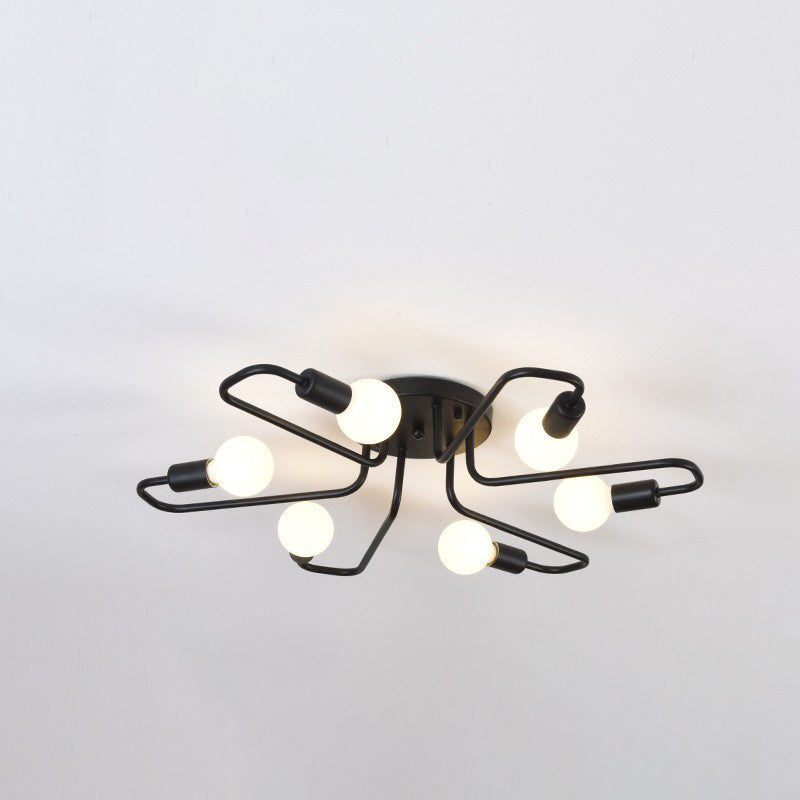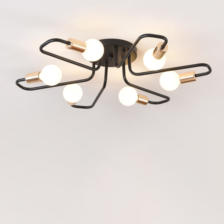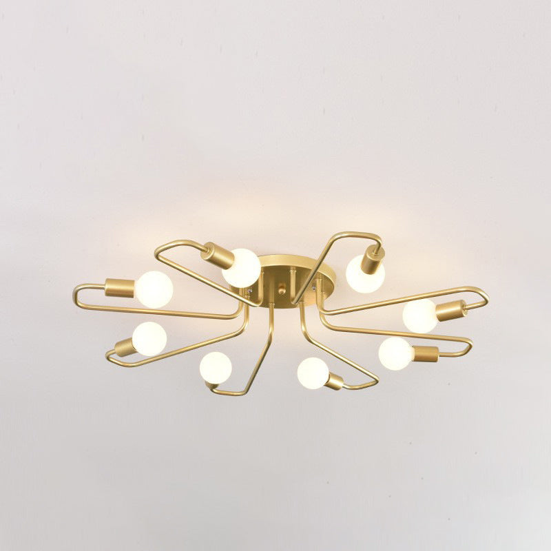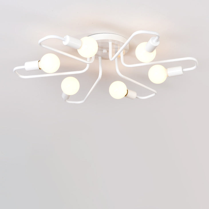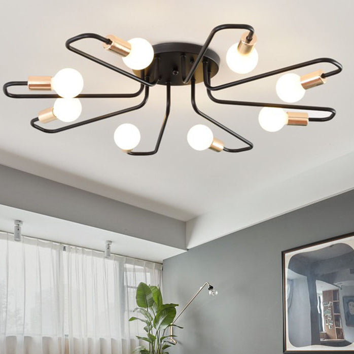Contemporary Nordic Curved Tube Line Iron 6/8 Light Semi-Flush Mount Ceiling Light For Living Room