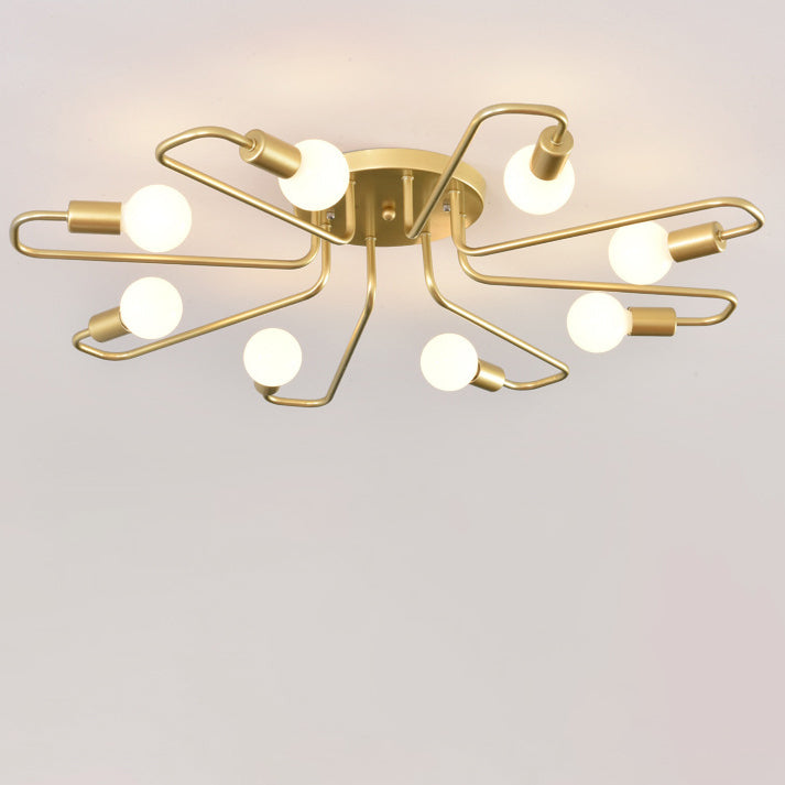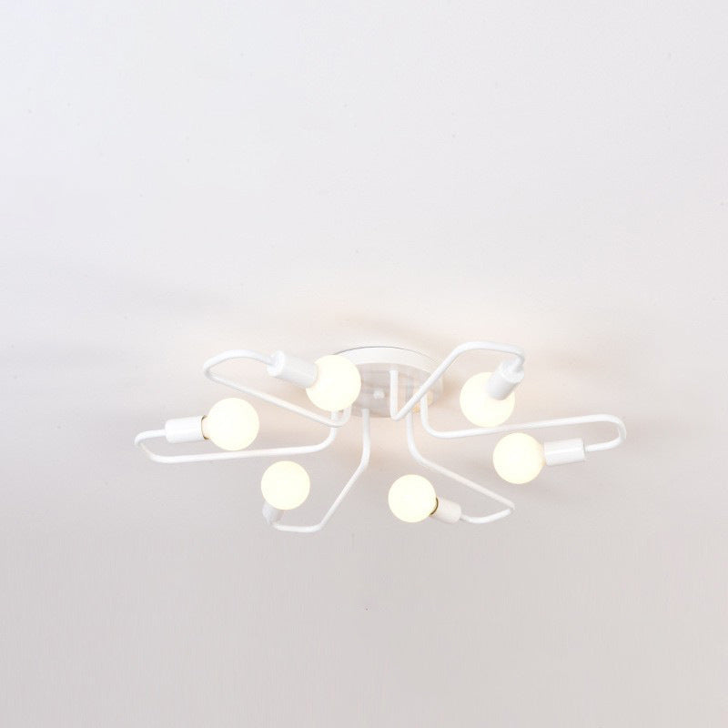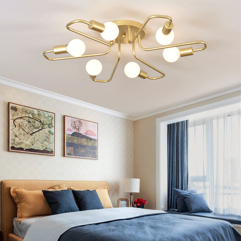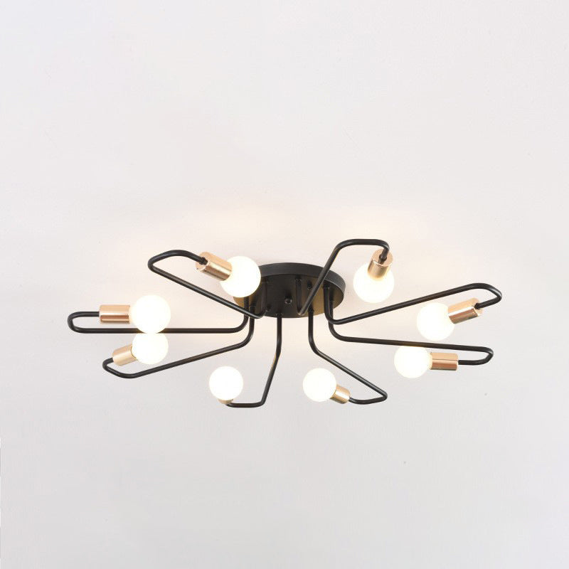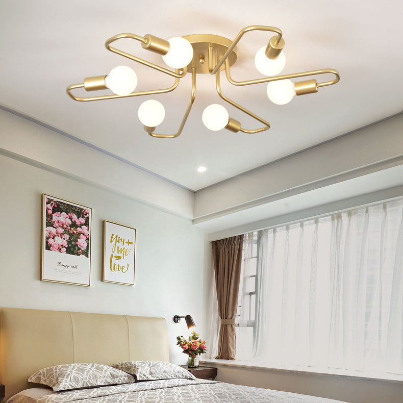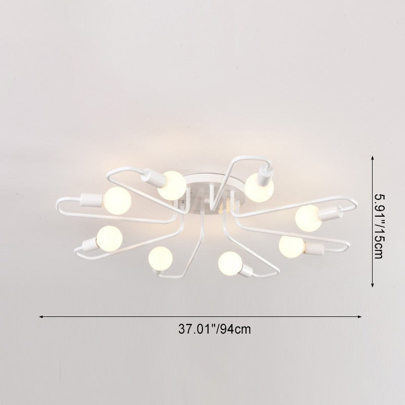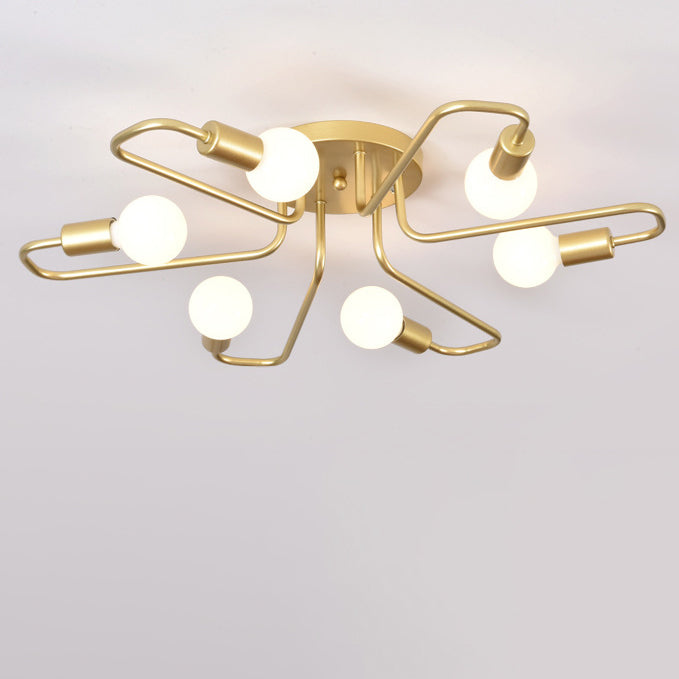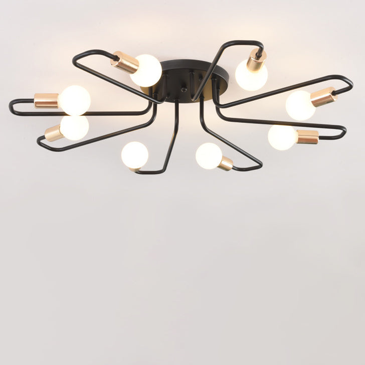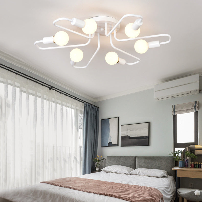 Contemporary Nordic Curved Tube Line Iron 6/8 Light Semi-Flush Mount Ceiling Light For Living Room