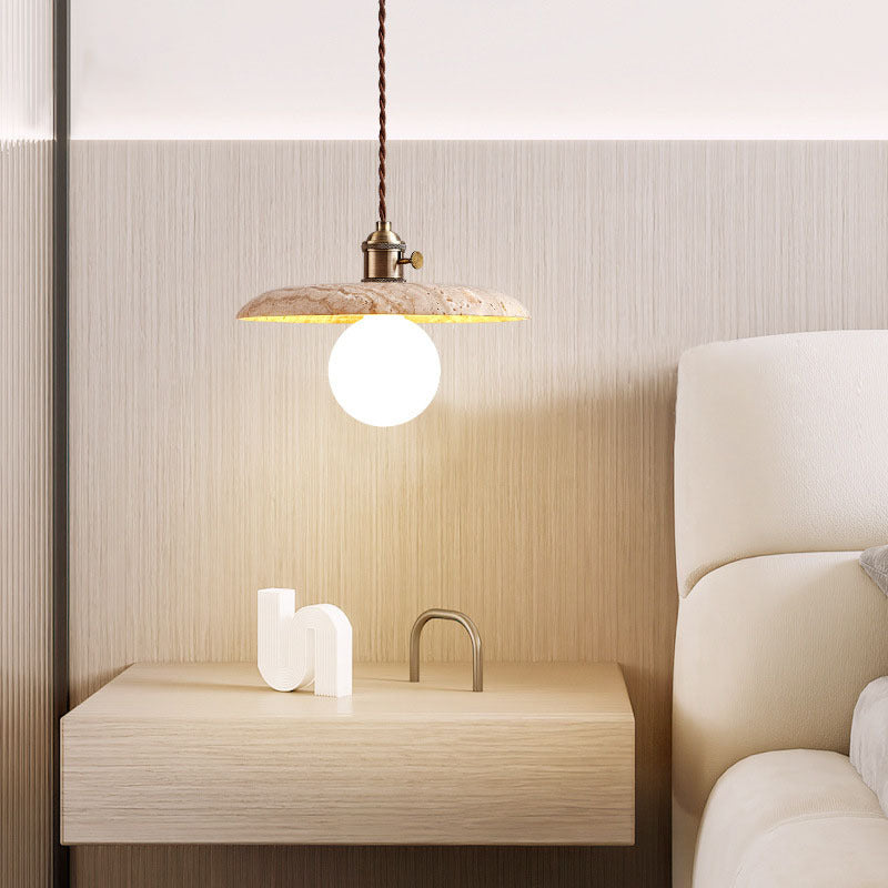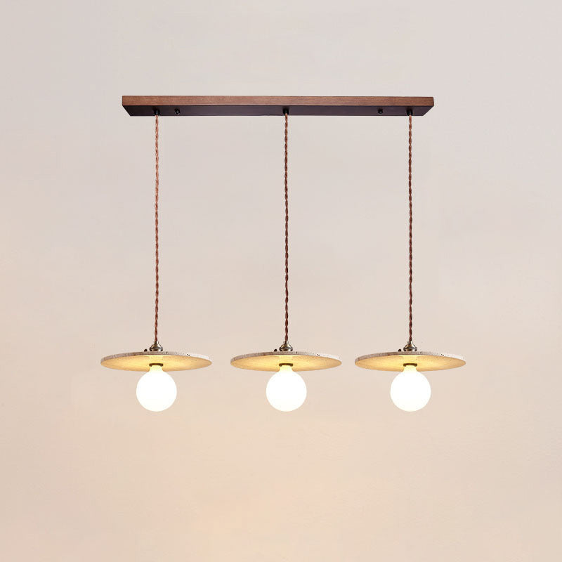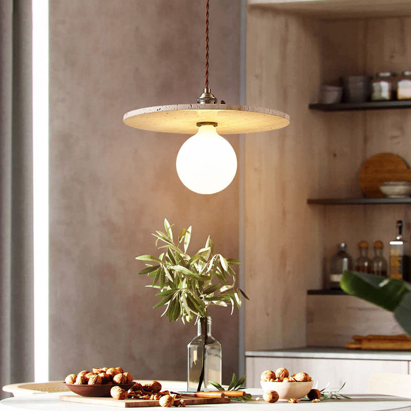Contemporary Nordic Disc-shaped Metal Travertine Glass 1/3-Light Pendant Light For Dining Room