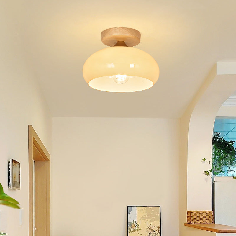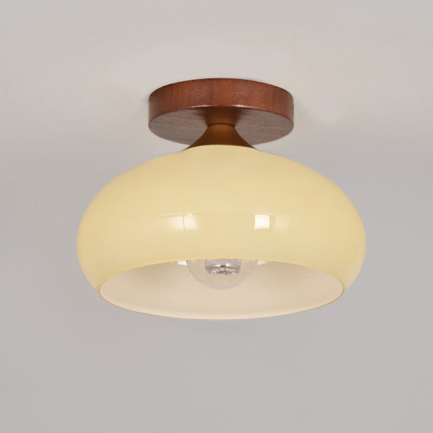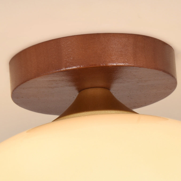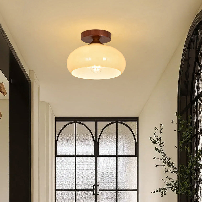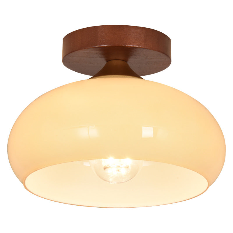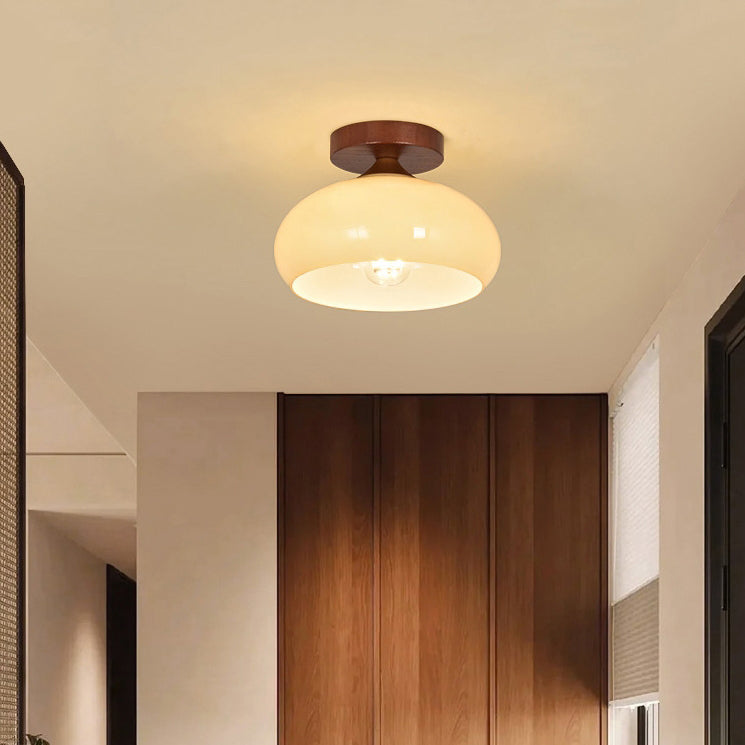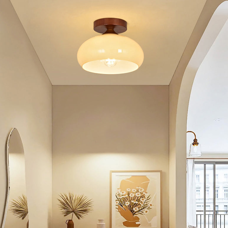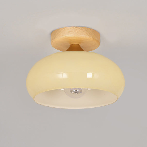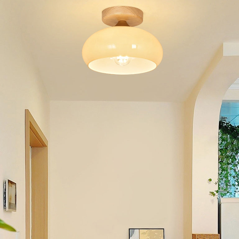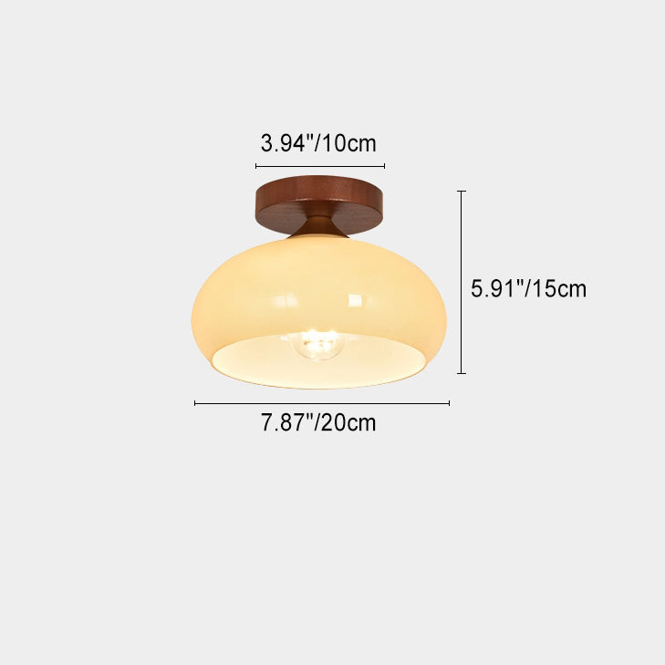 Contemporary Nordic Dome Semicircle Iron Solid Wood Glass 1 - Light Semi-Flush Mount Ceiling Light For Hallways