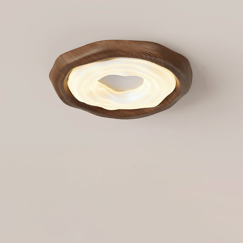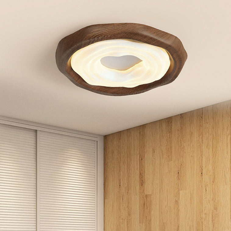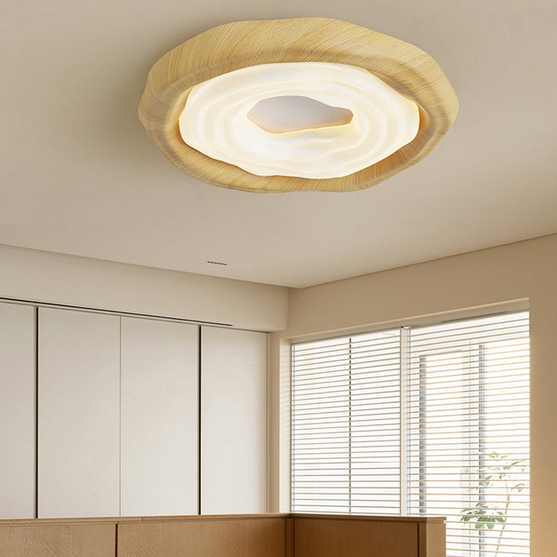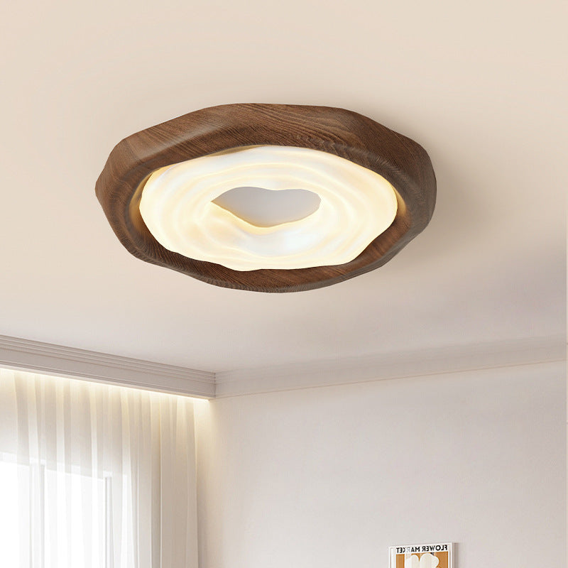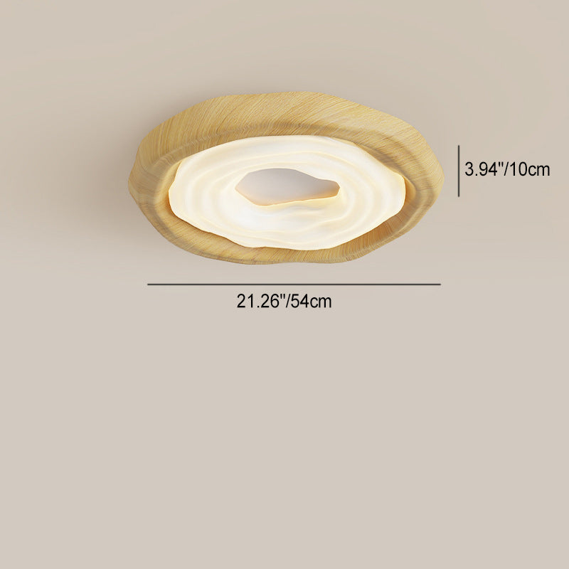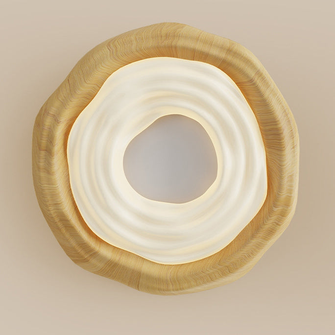 Contemporary Nordic Doughnut PE Wood Iron LED Flush Mount Ceiling Light For Bedroom