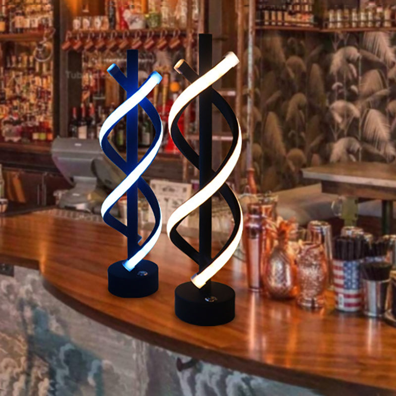 Contemporary Nordic Dual Spiral Wrapping Iron Strips LED Table Lamp For Bedroom
