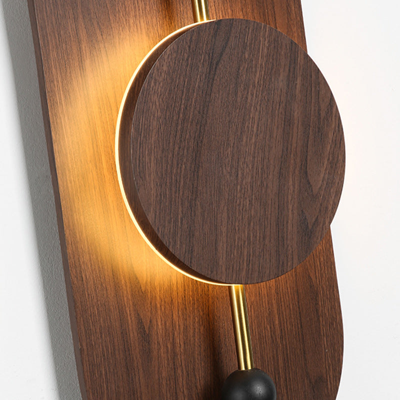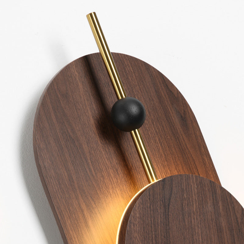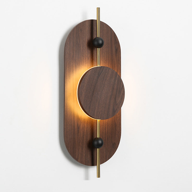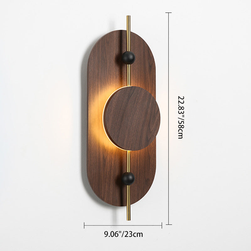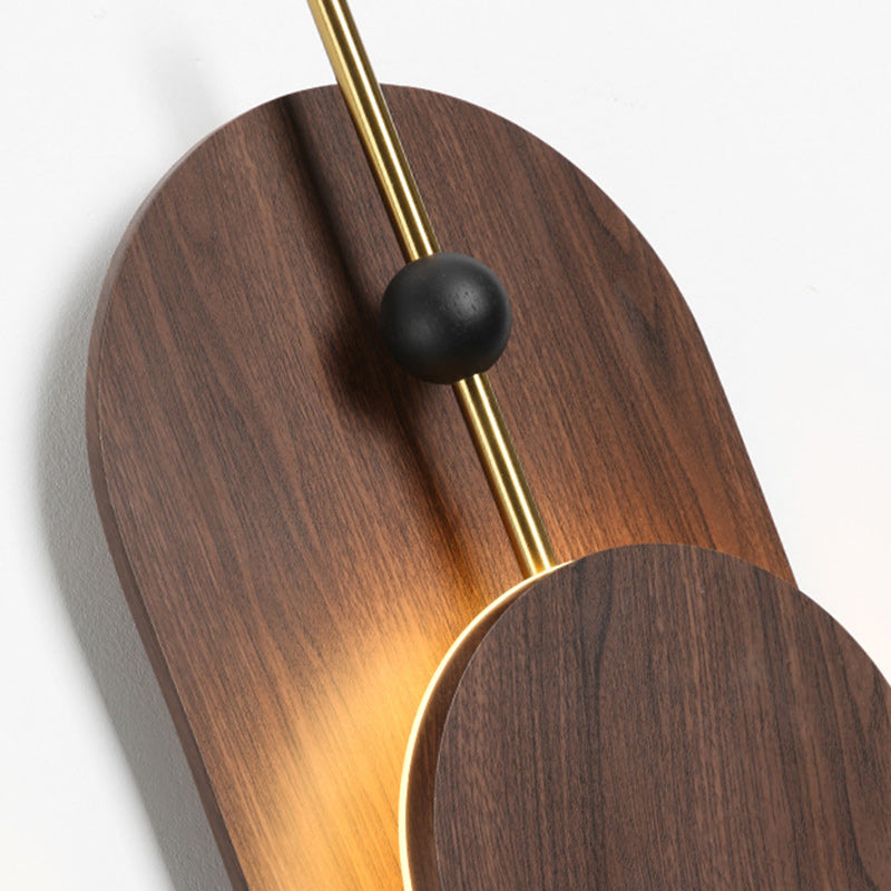 Contemporary Nordic Ellipse Iron Solid Wood LED Wall Sconce Lamp For Living Room