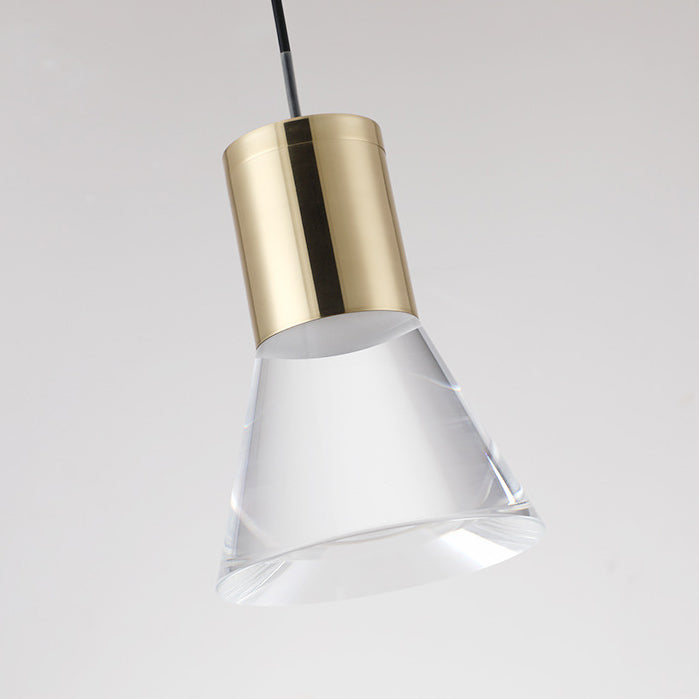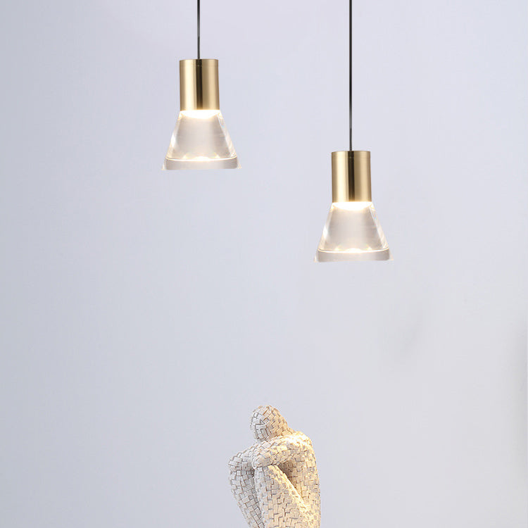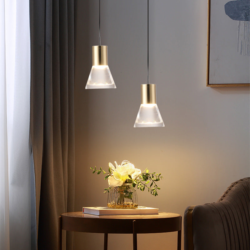 Contemporary Nordic Full Copper Acrylic Semi-Conical LED Pendant Light For Bedroom