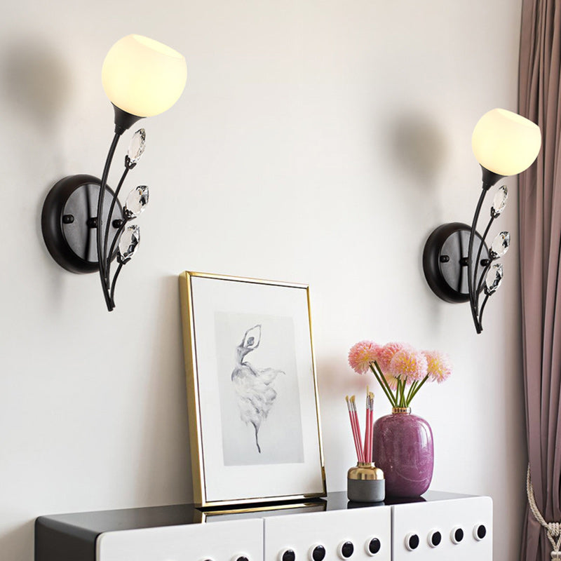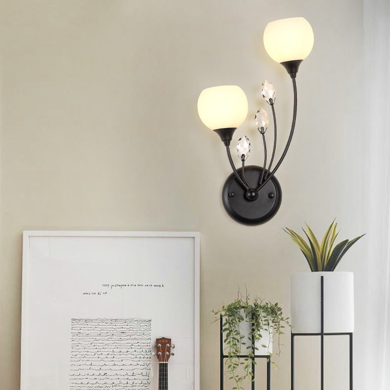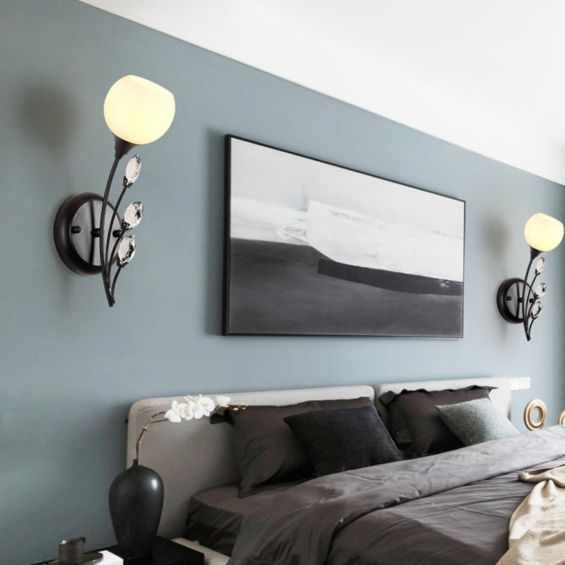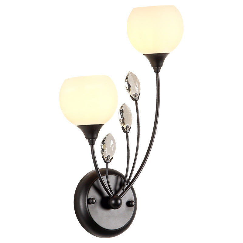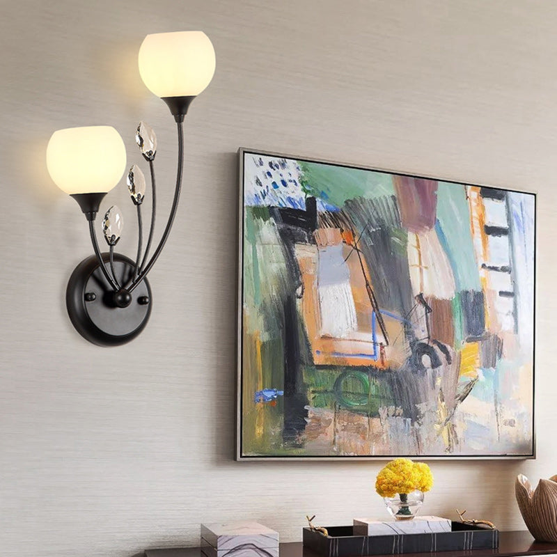Featuring a playful bubble-branch design, this Nordic-style wall sconce combines black ironwork, milk-white glass shades, and sharp crystal accents for a modern yet whimsical look. Ideal for bedrooms and living rooms, it delivers soft illumination with a unique artistic presence—perfect for elevating any space.
