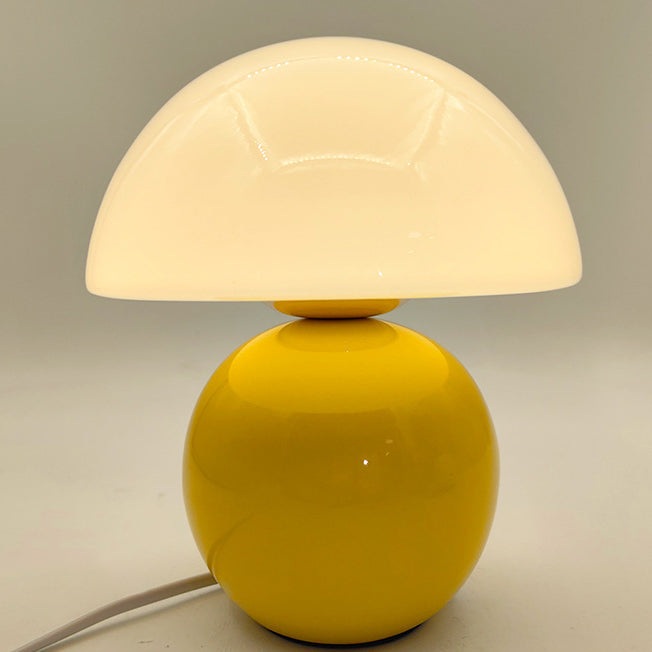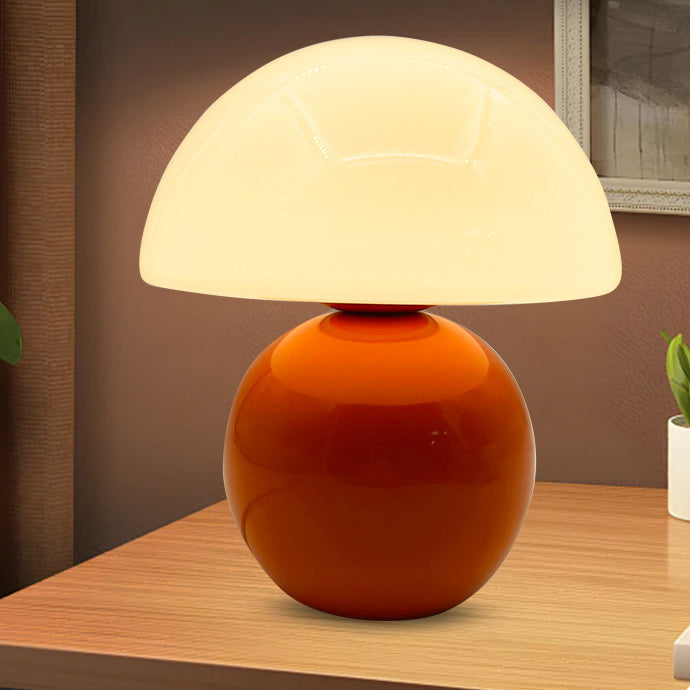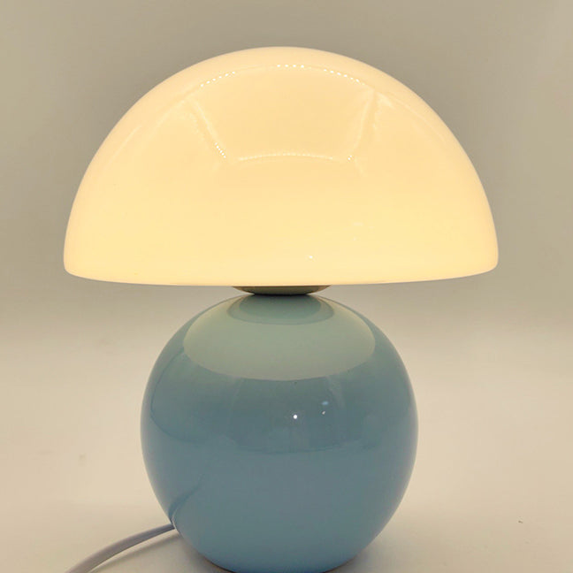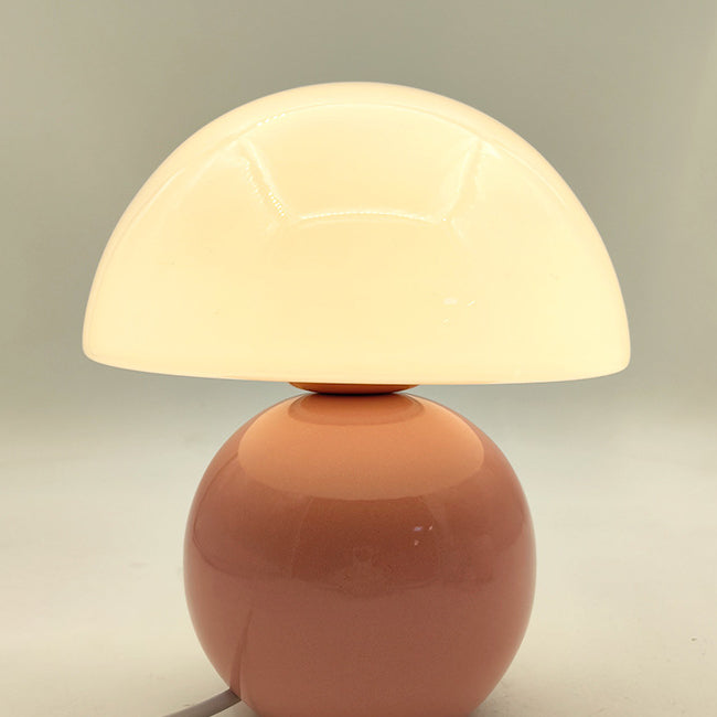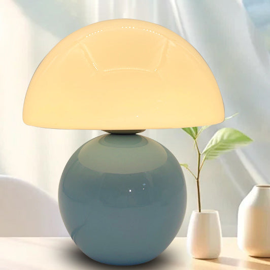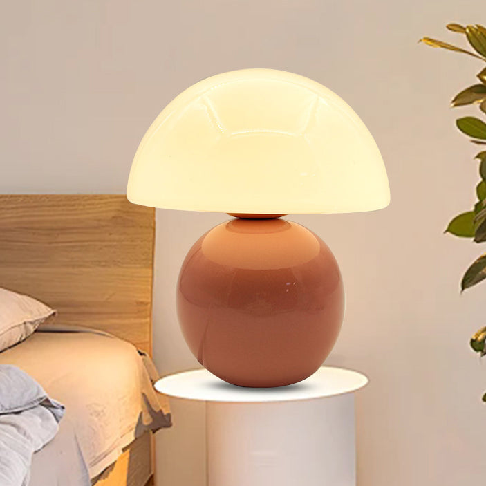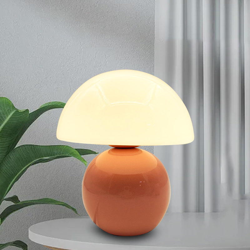 Contemporary Nordic Glass Semicircle Shade Ceramic Base 1-Light Table Lamp For Bedroom