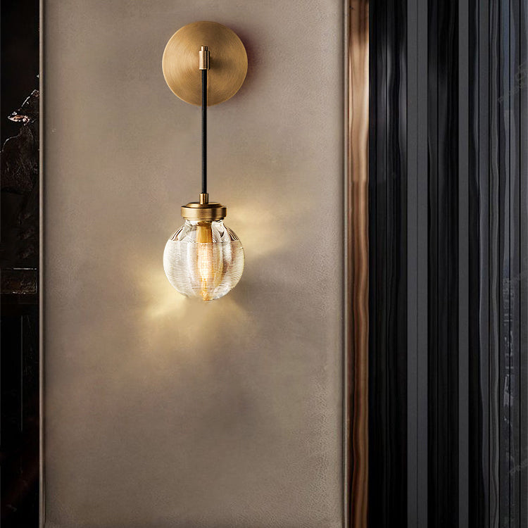 Contemporary Nordic Globe Copper Frame Glass Shade 1-Light Wall Sconce Lamp For Living Room