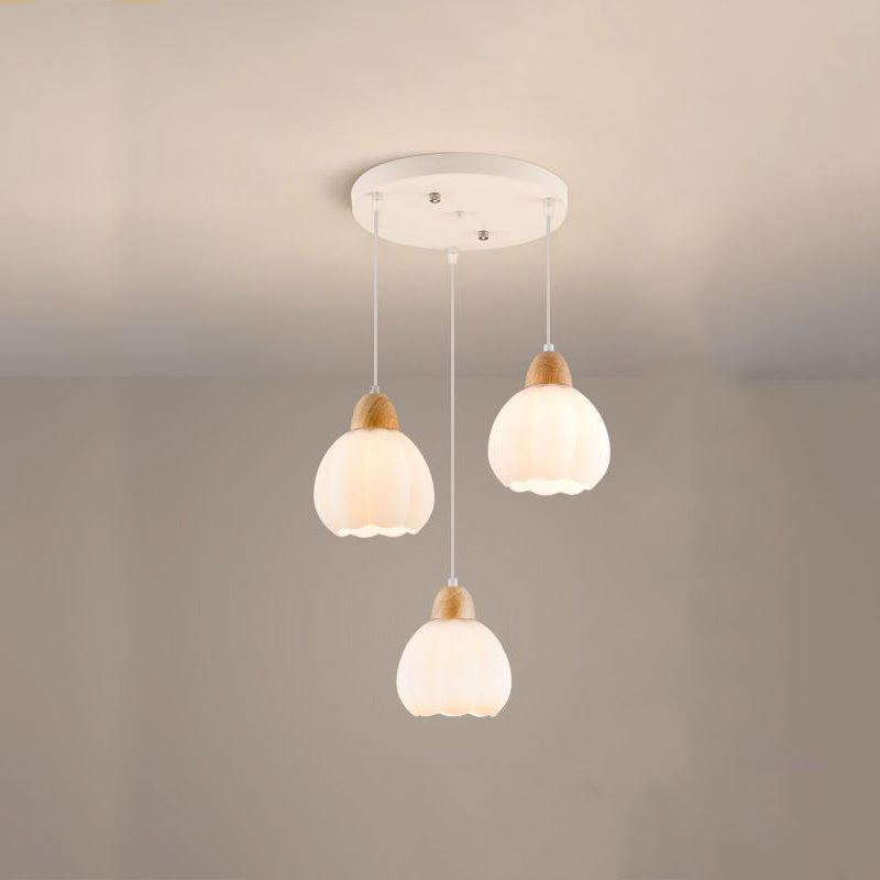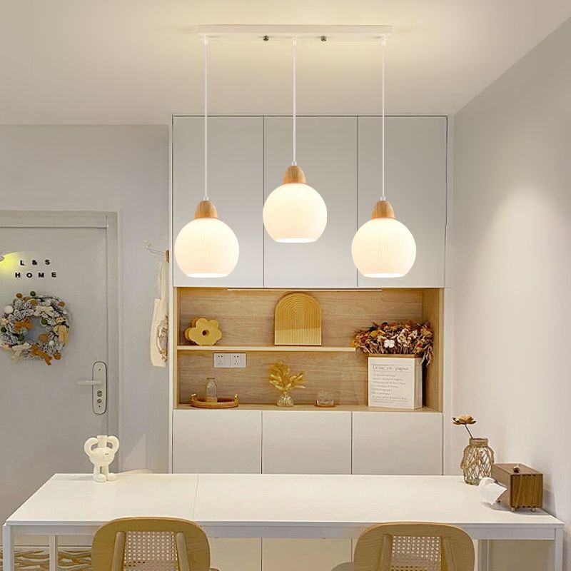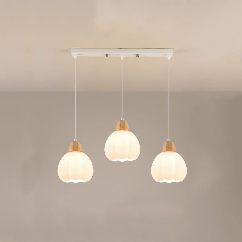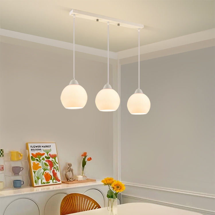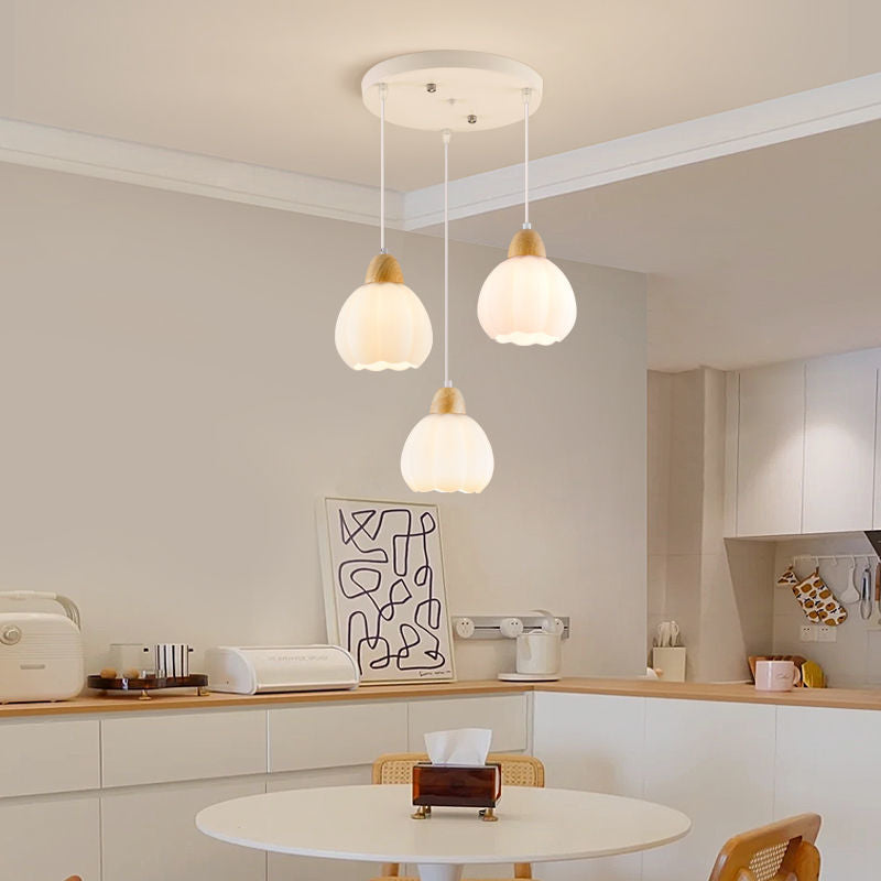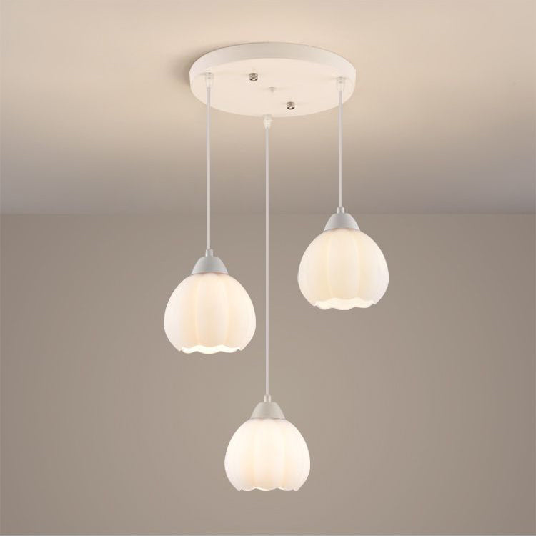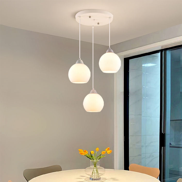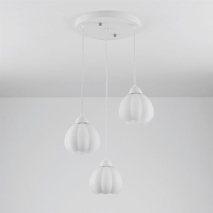 Contemporary Nordic Globe Pumpkin Flower Hardware Glass 3-Light Chandelier Island Light For Dining Room