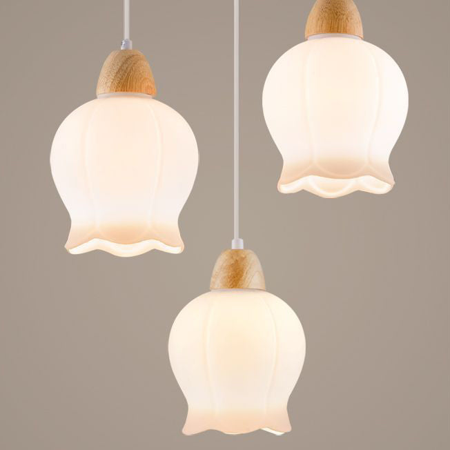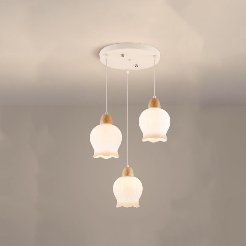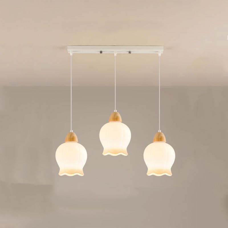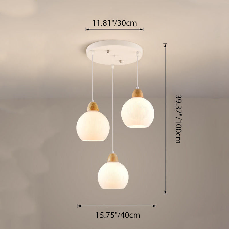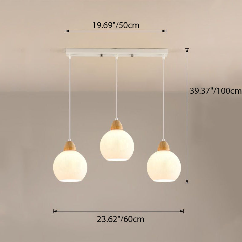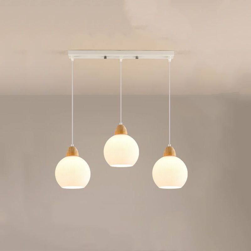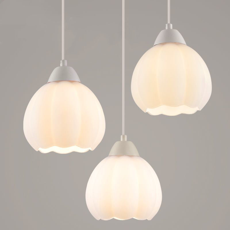 Contemporary Nordic Globe Pumpkin Flower Hardware Glass 3-Light Chandelier Island Light For Dining Room