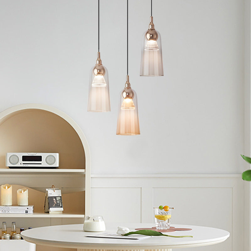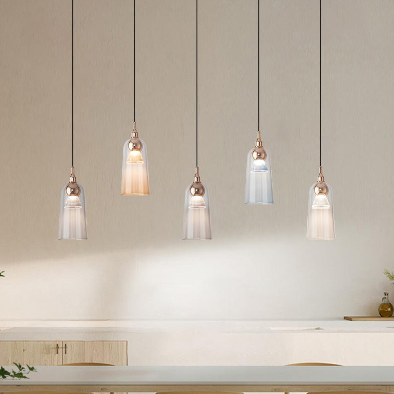Contemporary Nordic Gradient Acrylic Cup Shade Aluminum LED Pendant Light For Dining Room